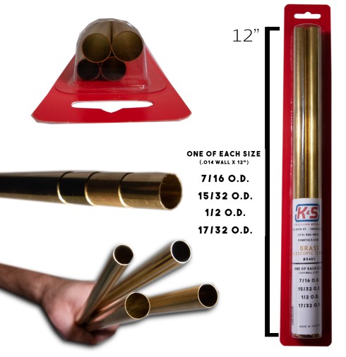 7/16 thru 17/32"x12" Brass Telescopic Tubing 0.14 Wall (4pc)