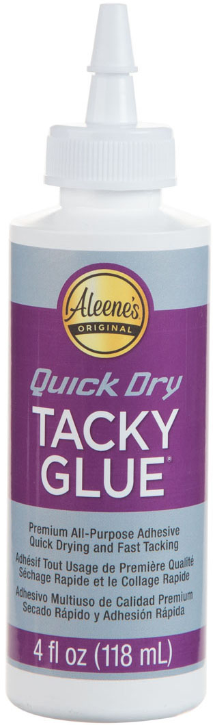 ALEENE'S-This tacky glue is a quick dry fast tack glue. Contains 4 ounces. Dries and tacks up faster than average craft glues. It cuts drying time by more than 50%. Dries clear and flexible. Non-toxic. Conforms to ASTM D 4236.