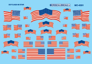 American 48-Star Flags Decals -- HO Scale Model Railroad Decal -- #4201