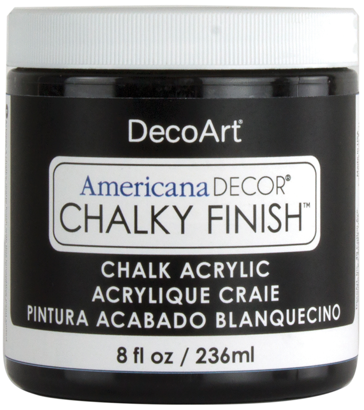 DECO ART-Americana Chalky Finish Paint. Paint that creates a unique, chalky, matte finish that gives pieces an old-world, European look and feel. This multi-surface paint is ideal for use on furniture, cabinets, walls, decorative glass, metal and more. Easy to distress. This package contains one 8oz jar of chalky finish paint. Comes in a variety of paint colors. Each sold separately. Conforms to ASTM D 4236. Non-toxic. Made in USA.