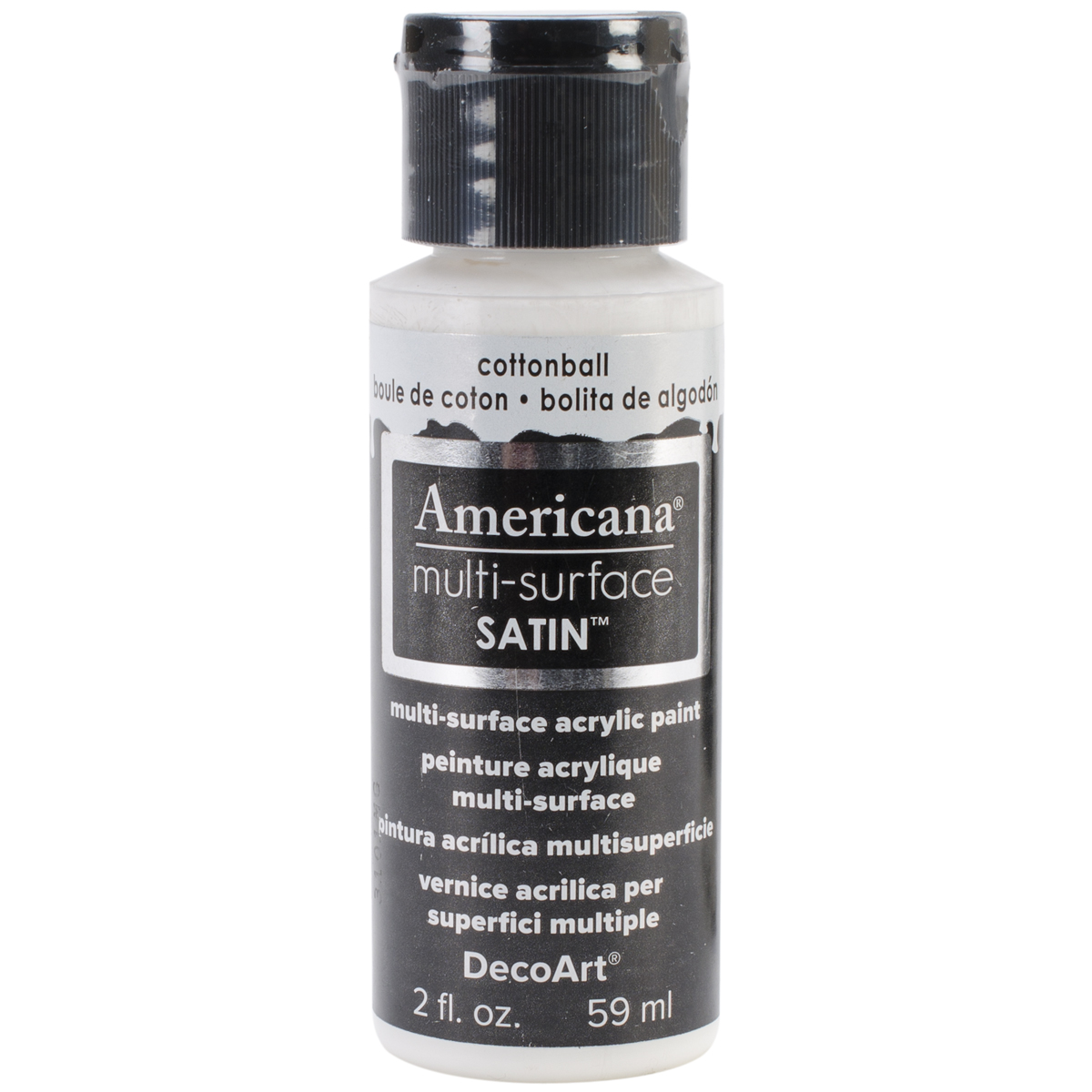 DECO ART-Americana Multi Surface Satin Acrylic. This provides the best adhesion, best finish, and best pigments to create the ultimate multi-surface paint! This do-it-all paint can be used on wood, metal, glass, terra cotta, ceramics, paper mache, most plastic, fabric and canvas. This package contains one 2oz bottle of satin acrylic. Available in a variety of colors, each sold separately. Conforms to ASTM D 4236. Made in USA.