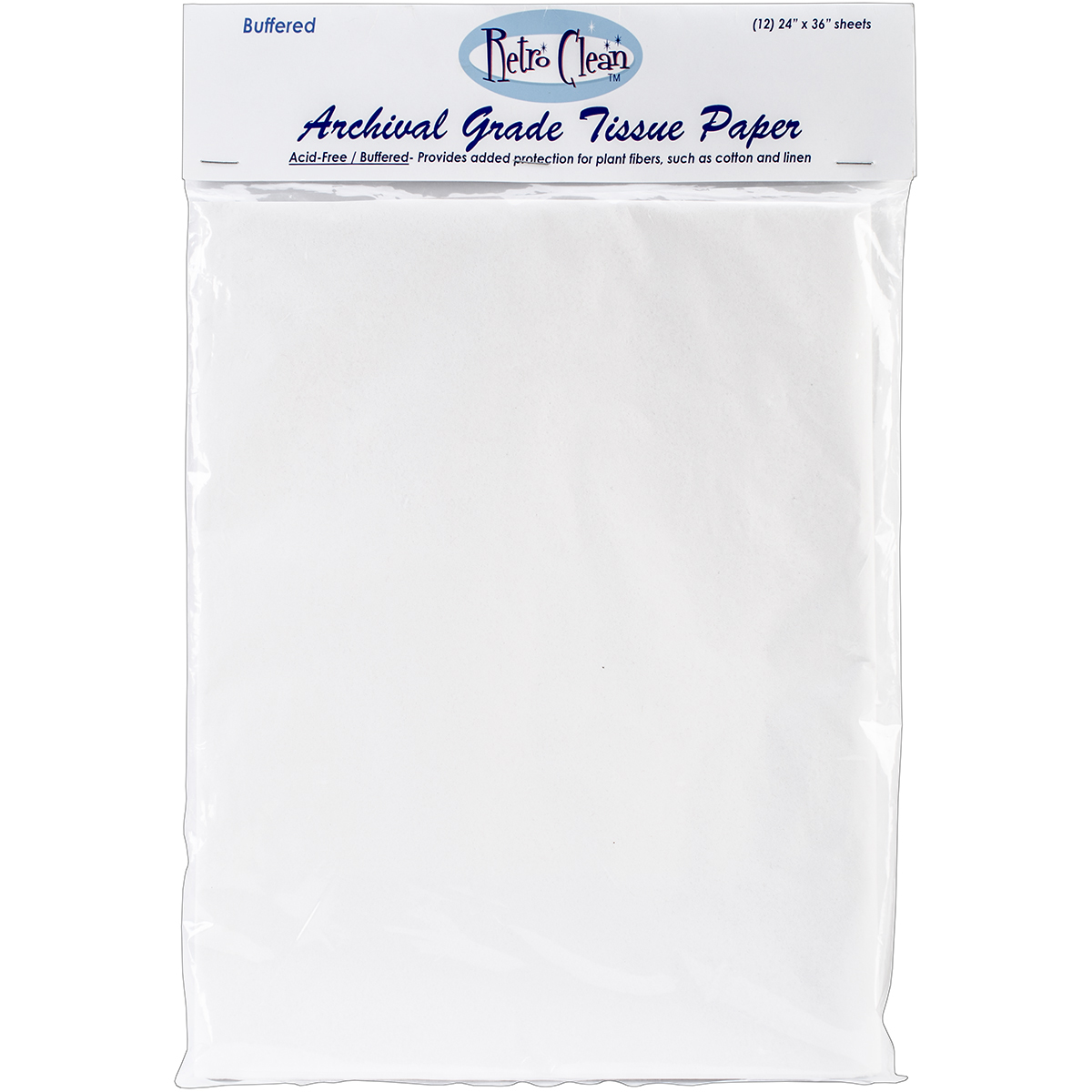 Retro Clean-Archival Grade Tissue Paper: Buffered. Perfect for interleaving prints and photos or wrapping quilts, gowns, linens and other historic textile items. This package contains twelve 24x36 inch tissue papers. Acid free. Made in USA.