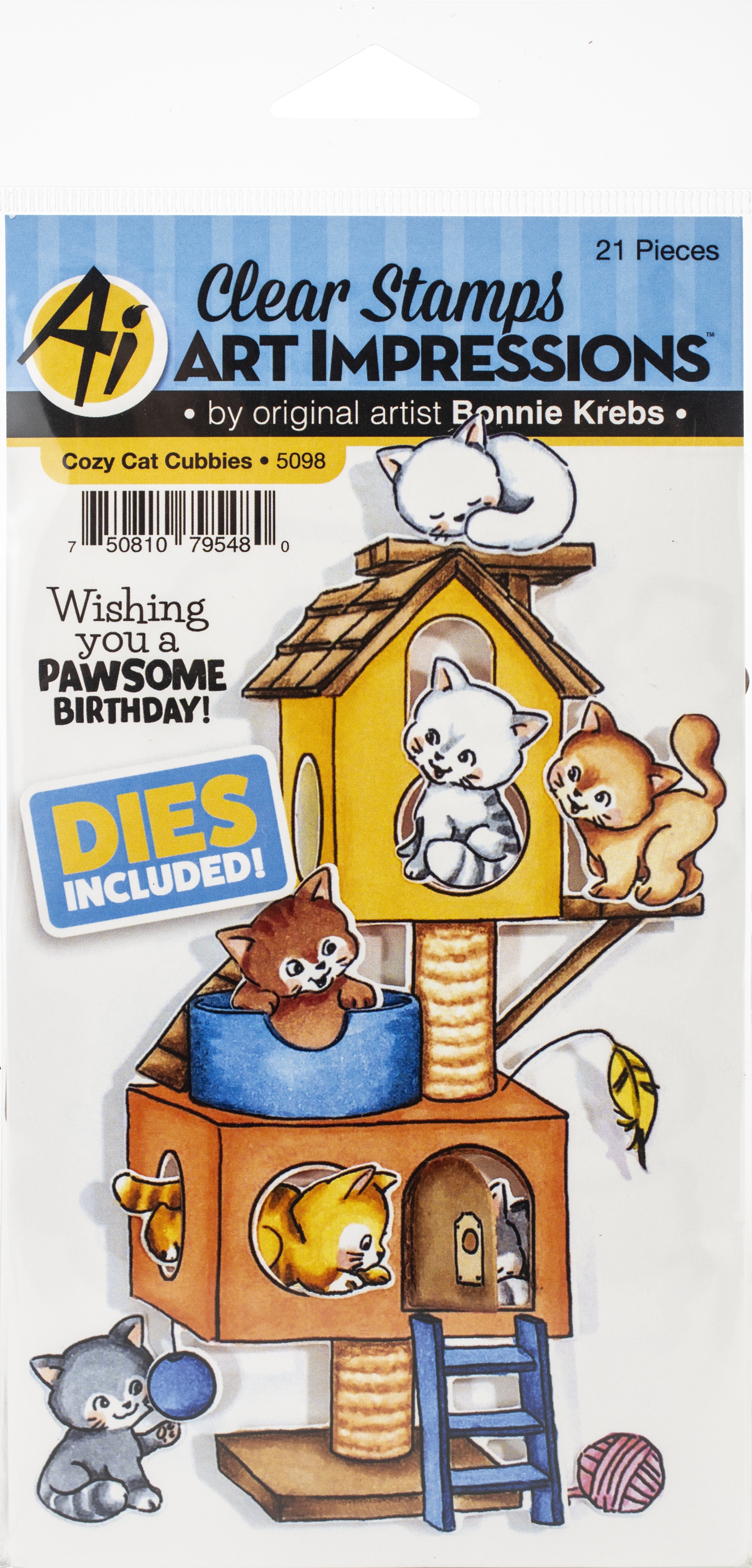 Art Impressions Critter Cubbies Clear Stamp & Die Set Cozy Cat