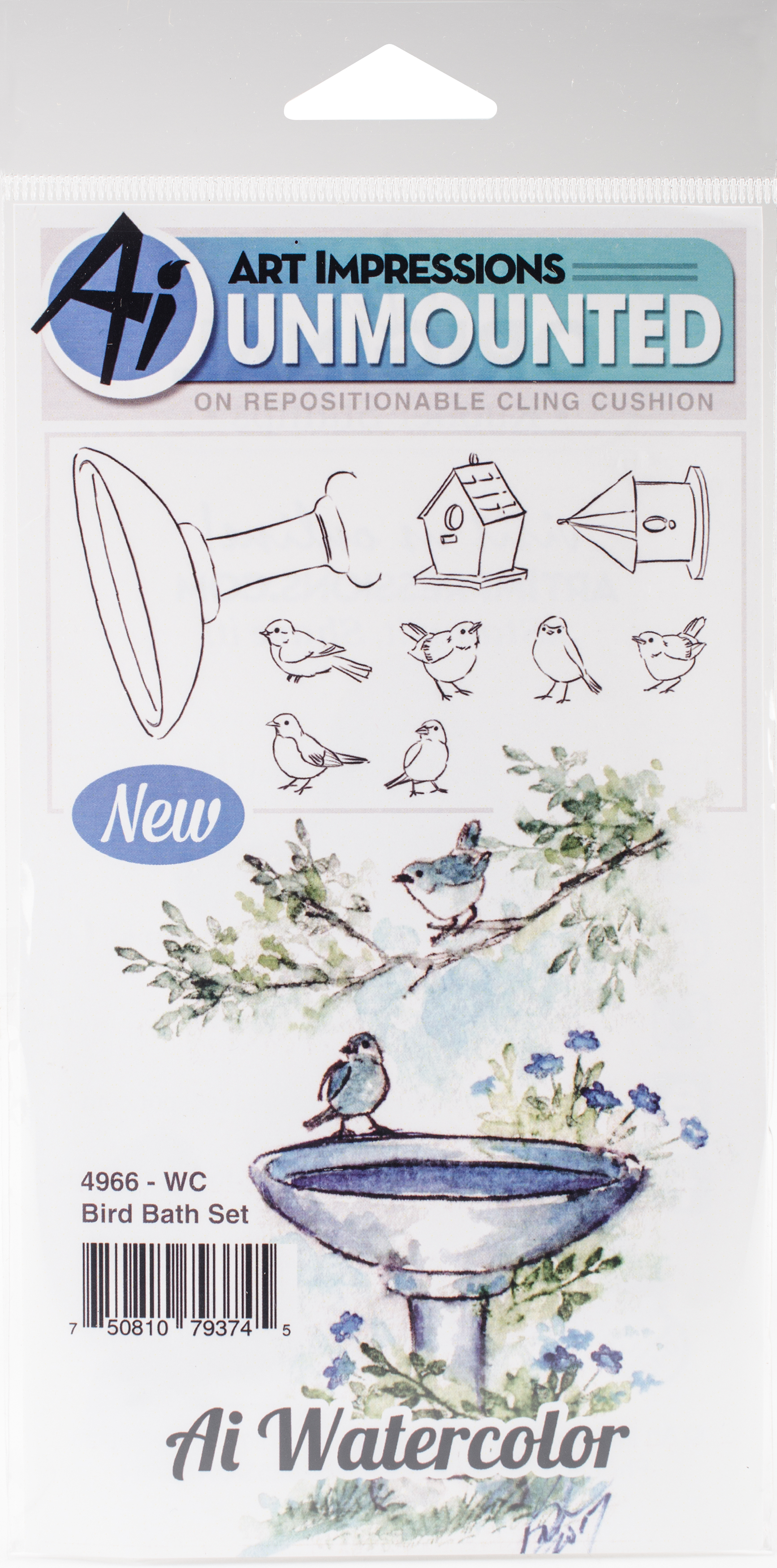 Art Impressions Watercolor Cling Rubber Stamps 4"X7" Bird Bath
