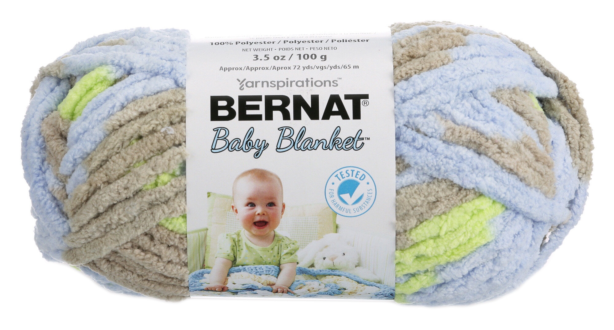 BERNAT-Baby's Blanket Yarn. This fast working yarn is perfect for super soft blankets, hats, booties, and more for baby. Weight category: 6, 100% polyester, 3.5oz/100g, 86yd/78m. Gauge: 8st x 13r = 4in/10cm on size US11/8mm knitting needles. Recommended crochet hook size L11/8mm. Dyelotted: we try but are not always able to match dyelots. Care: machine wash, tumble dry, do not bleach, do not iron, do not dry clean. Imported.