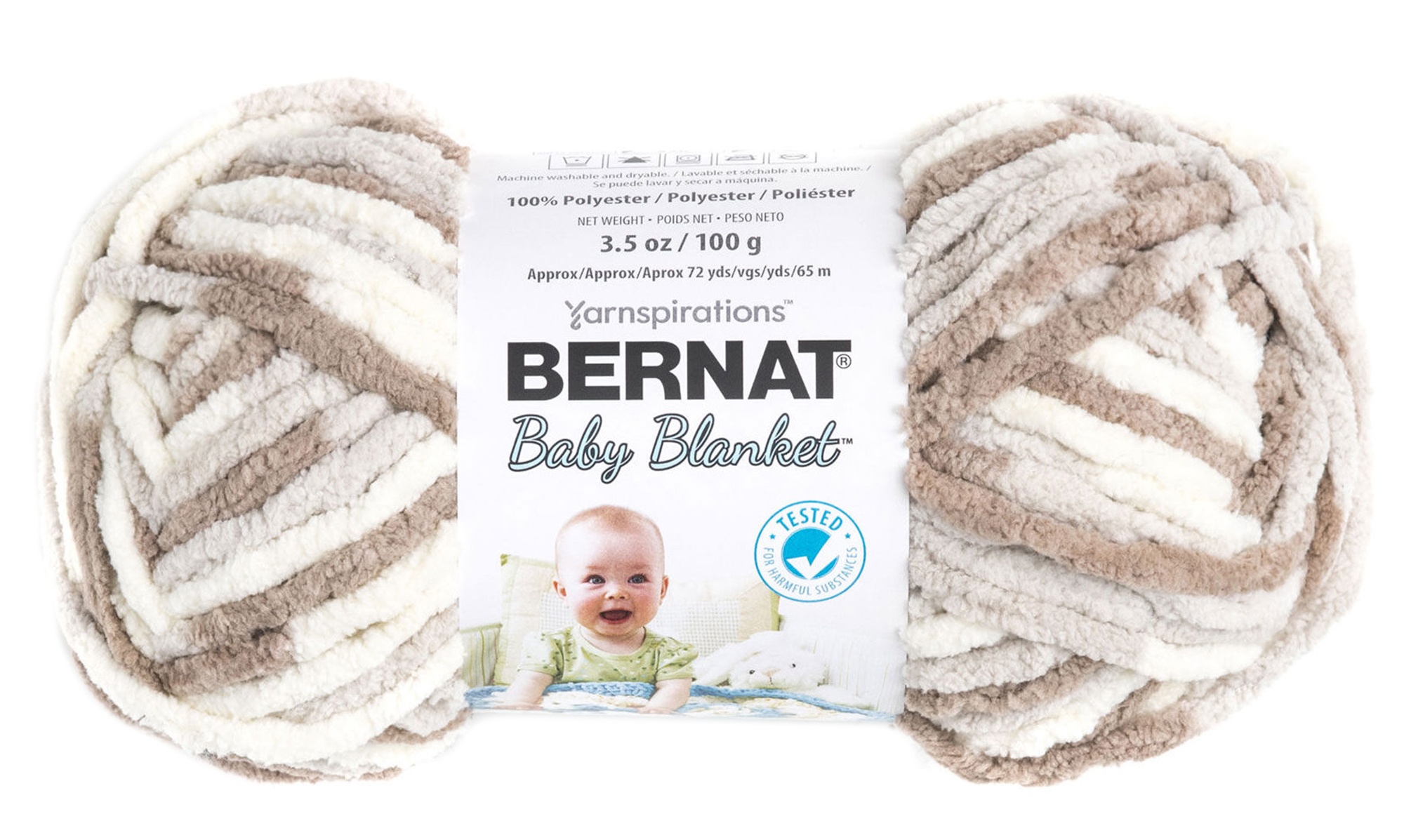 BERNAT-Baby's Blanket Yarn. This fast working yarn is perfect for super soft blankets, hats, booties, and more for baby. Weight category: 6, 100% polyester, 3.5oz/100g, 86yd/78m. Gauge: 8st x 13r = 4in/10cm on size US11/8mm knitting needles. Recommended crochet hook size L11/8mm. Dyelotted: we try but are not always able to match dyelots. Care: machine wash, tumble dry, do not bleach, do not iron, do not dry clean. Imported.