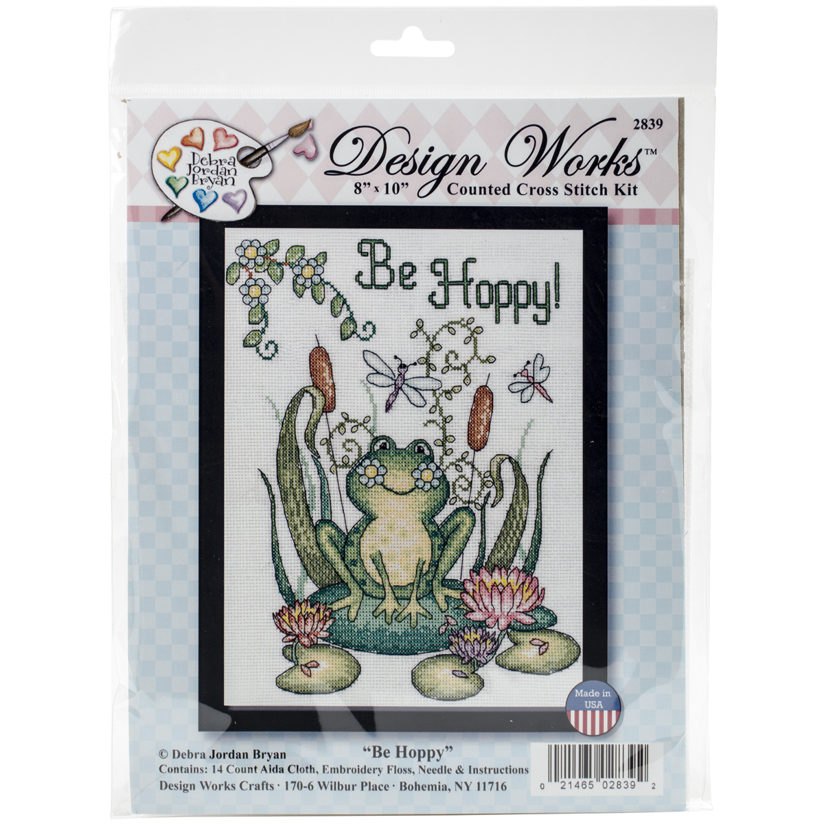 TOBIN-Design Works: Counted Cross Stitch Kit. Beautiful designs and top quality materials make Tobin one of the top cross stitch kit makers worldwide. This kit contains 14-count Aida cloth, embroidery floss, needle and instructions. Design: Be Hoppy (Frog). Finished size: 10x8 inches. Made in USA.