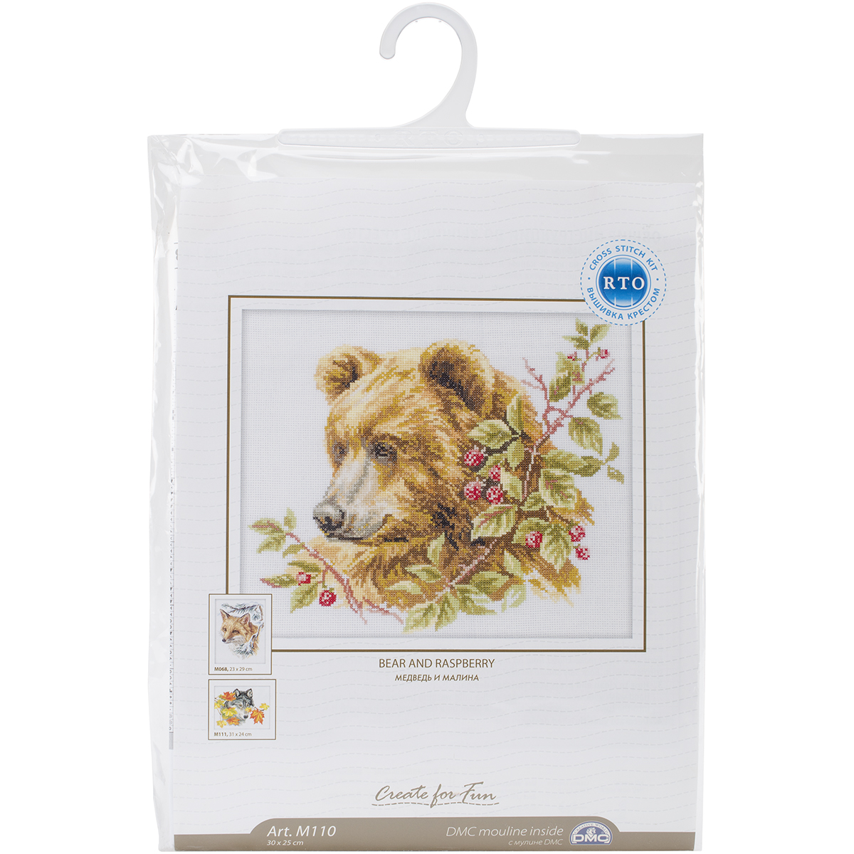 RTO-Counted Cross Stitch Kit. This little kit will allow you to create a beautiful floral design that will make a great decoration for any room of the house when completed. This package contains 100% cotton floss, 14 count Aida fabric, one needle, one chart and instructions. Design size: 9-3/4x11-3/4 inches. Design: Bear. Imported.