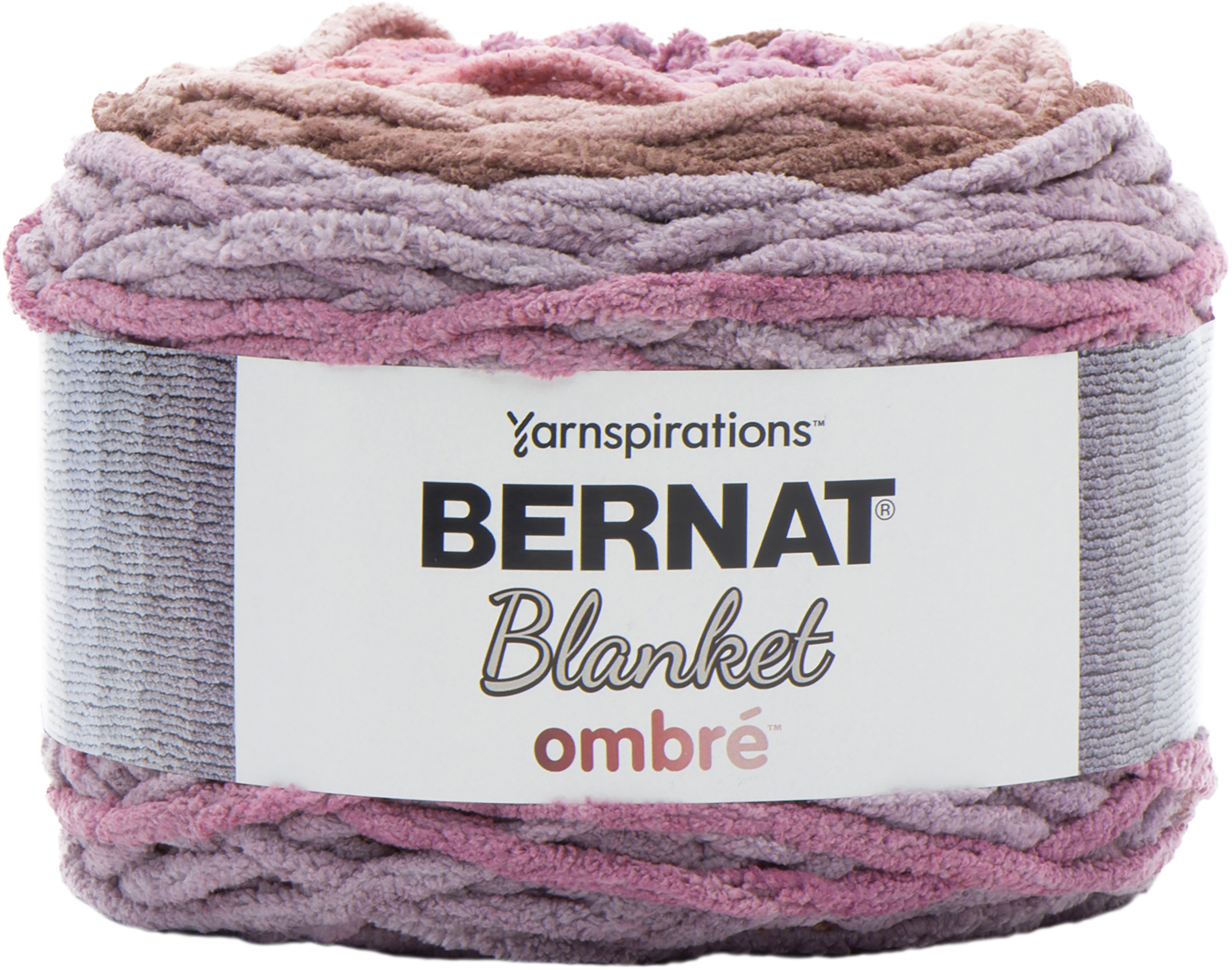 BERNAT-Blanket Ombres. Make a bold statement with Bernat Blanket Ombres. The same cozy, chenille-style Bernat Blanket now in eye-catching graduated shades to create beautiful multi-tonal home decor projects. Weight category: 6. Content: 100% polyester. Putup: 10.5oz/300g, 220yd/201m. Gauge: 8sx13r = 4in/10cm on size US11/8mm knitting needles. Suggested crochet hook USL11/8mm. Dyelotted: we try but are not always able to match dyelots. Machine wash and dry. Comes in a variety of colors. Each sold separately. Imported.