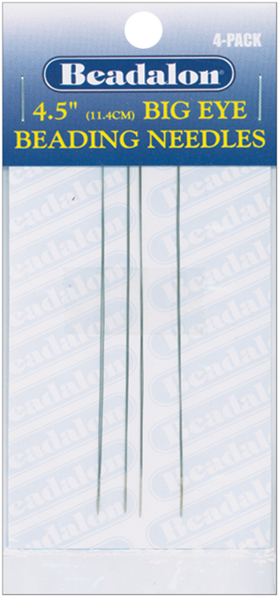 BEADALON-Big Eye Beading Needles. These beading needles are made from high-tensile stainless steel Beadalon wire. The extra-large eye spans almost the entire length of the needle making it easy to thread. Works well for stringing beads individually or from a bead tray. This package contains four Big Eye Beading Needles. Available in a variety of lengths: each sold separately. Caution: sharp point. Imported.