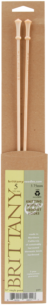 BRITTANY COMPANY-Single Point Knitting Needles. Brittany Art Deco Straight Needles in Birch are hand finished and exactly sized. Finely crafted wooden tools of this nature have long been prized by craftsmen around the world. We invite you to celebrate your crafts endeavors with the finest tools available. Available in all the popular sizes. Made in USA.