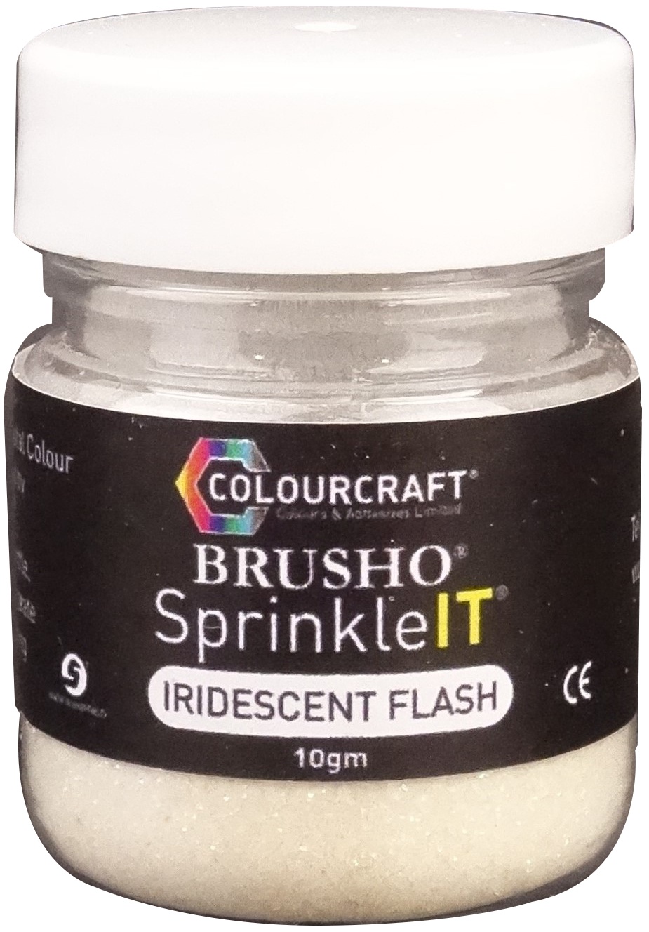 Add some sparkle and shimmer to your next project! Ideal for use on canvases, greeting cards, mixed media, and more. This package contains 10 grams of Brusho SprinkleIt. Available in multiple colors; each sold separately. WARNING: Choking Hazard. Not suitable for children under 3 years. Imported.