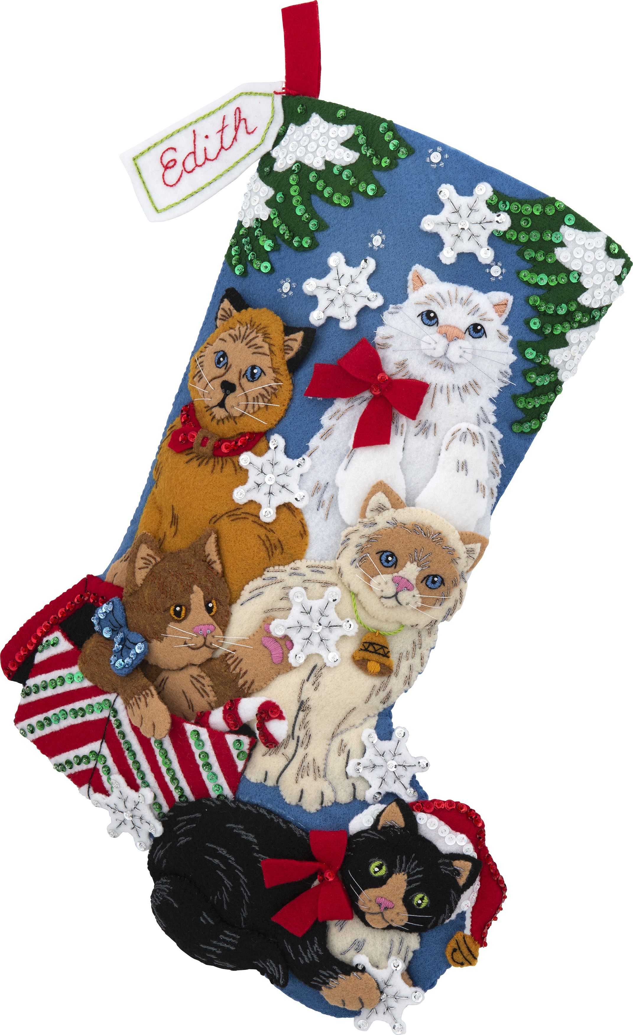 Bucilla Felt Stocking Applique Kit 18" Long Christmas Kitties
