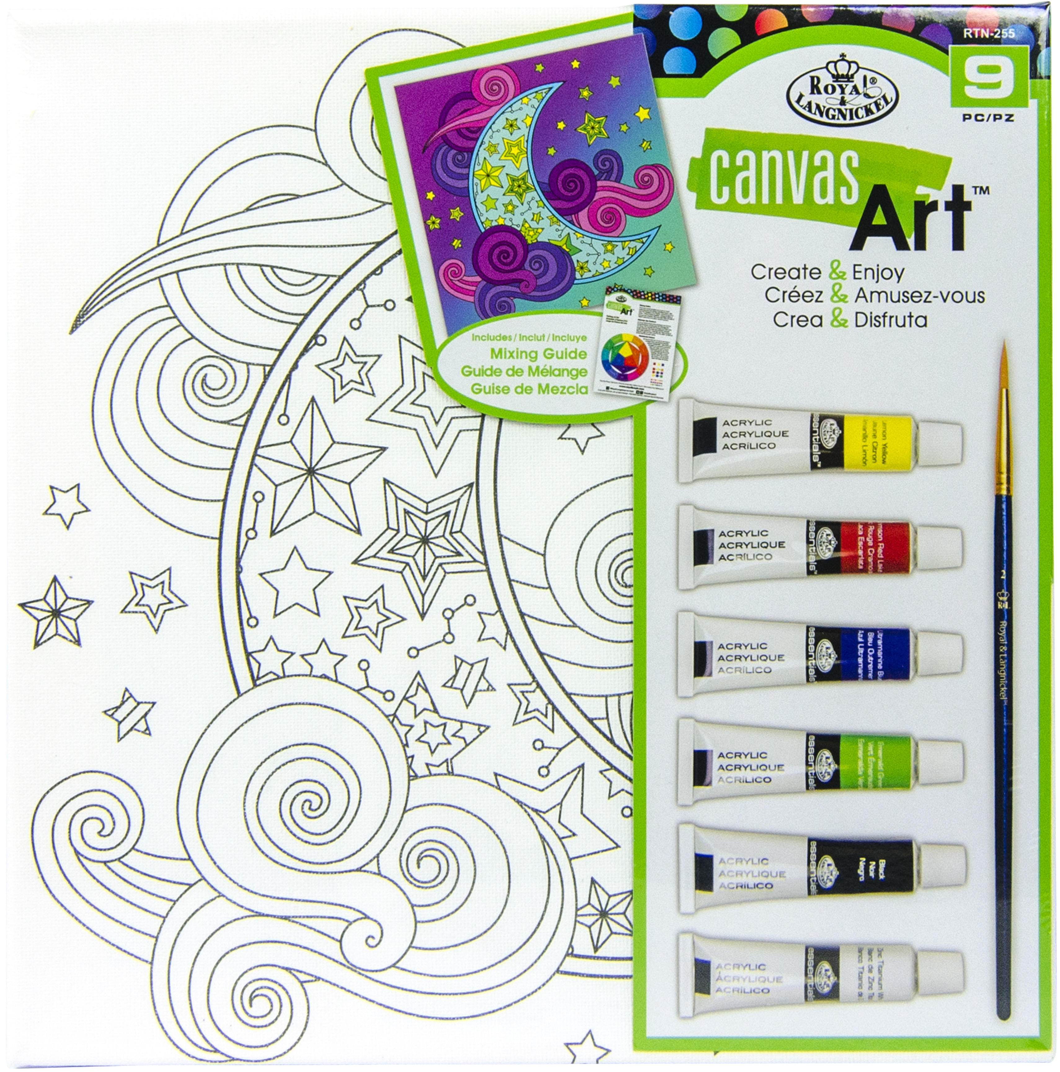 These supplies will bring out the inner artist in everyone. This 10x10 inch package contains Moon Art Paint Kit: a collection of six acrylic paints, one brush, one reference sheet, and one pre-printed canvas. Imported.