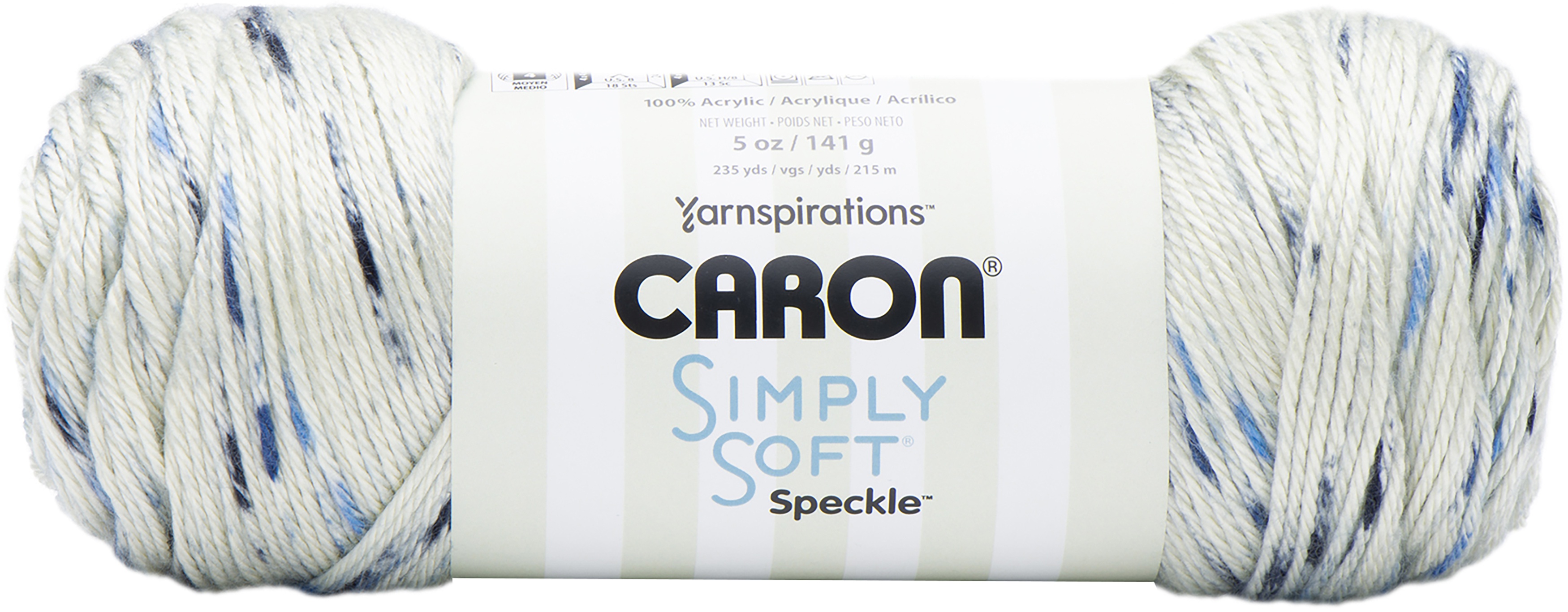 CARON-Simply Soft Speckle. Caron Simply Soft Speckle is the same Simply Soft yarn you know and love, now with gorgeous speckled pops of color. This yarn is perfect for all your knit and crochet projects with beautiful drape and sheen that Simply Soft is known for. Weight category: 4. Content: 100% acrylic. Putup: 5oz/141g, 235yd/215m. Gauge: 18sx24r = 4in/10cm on size US 8/5mm knitting needles. Suggested crochet hook: USH8/5mm. Dyelotted: we try but are not always able to match dyelots. Care: Machine wash and dry. Comes in a variety of colors. Each sold separately. Imported.