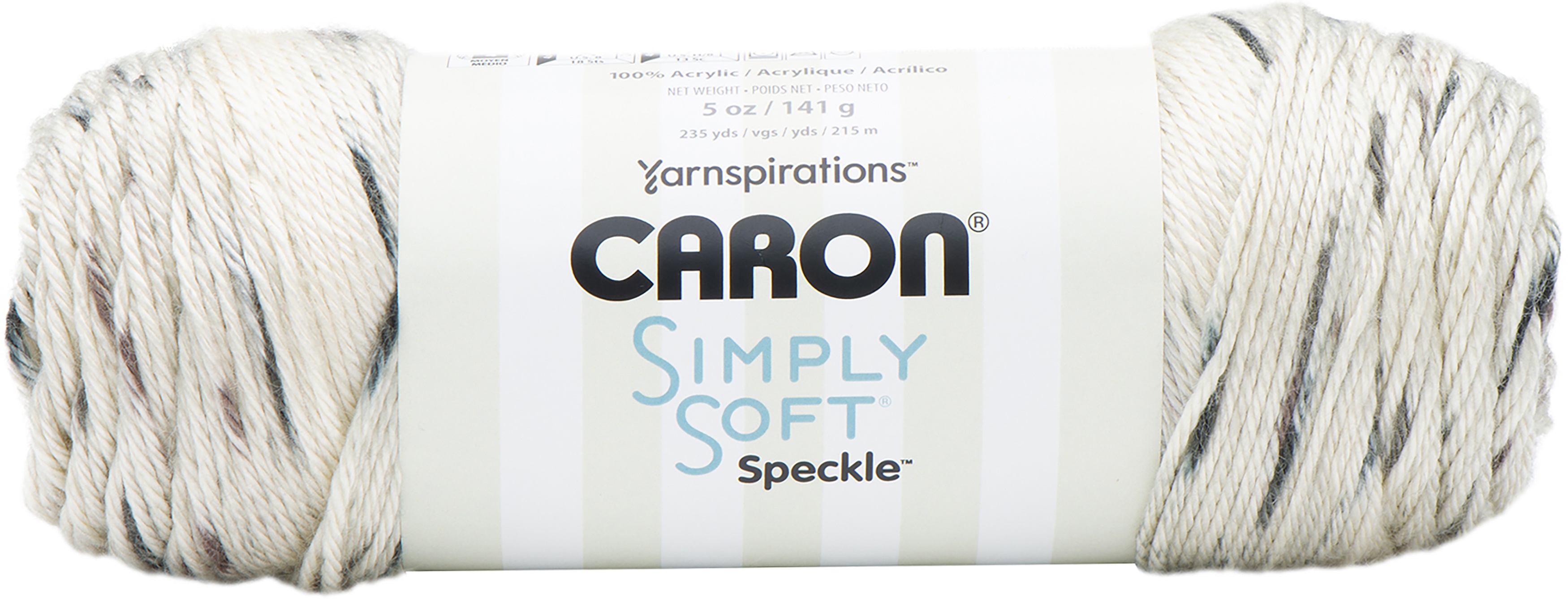 CARON-Simply Soft Speckle. Caron Simply Soft Speckle is the same Simply Soft yarn you know and love, now with gorgeous speckled pops of color. This yarn is perfect for all your knit and crochet projects with beautiful drape and sheen that Simply Soft is known for. Weight category: 4. Content: 100% acrylic. Putup: 5oz/141g, 235yd/215m. Gauge: 18sx24r = 4in/10cm on size US 8/5mm knitting needles. Suggested crochet hook: USH8/5mm. Dyelotted: we try but are not always able to match dyelots. Care: Machine wash and dry. Comes in a variety of colors. Each sold separately. Imported.