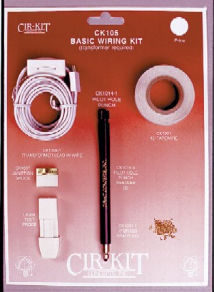 The CK105 kit contains all the parts necessary to tape wire a 5 to 6-room dollhouse. You decide which transformer is most suitable for your wiring needs. Instructions and wiring diagram included. Lowest price wiring kit on the market! Pilot Hole Punch Needles (2) Transformer Lead-In Wire Junction Splice Test Probe No. 55 Bit Spacer Eyelet Punch Handle 15' Tapewire Small Hollow Eyelets (60) 1/8" Brass Brads Transformer required. This scale is also referred to as 1/48th « less