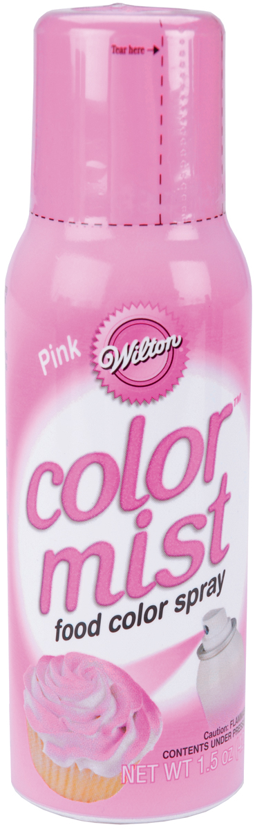 WILTON-Color Mist Food Color Spray. This easy-to-use spray gives decorators the versatility and dazzling effects of an airbrush in a convenient can! Creates a rainbow of excitement for so many desserts. Use it to transform a plain iced cake with sensational color, add splashes of holiday color to iced cookies and cupcakes. Great for party desserts: highlighting whipped topping or ice cream with color. No mess, taste-free formula add a little color or a lot. Certified Kosher. 1-1/2 oz can. Available in a variety of colors: each sold separately. Made in USA.