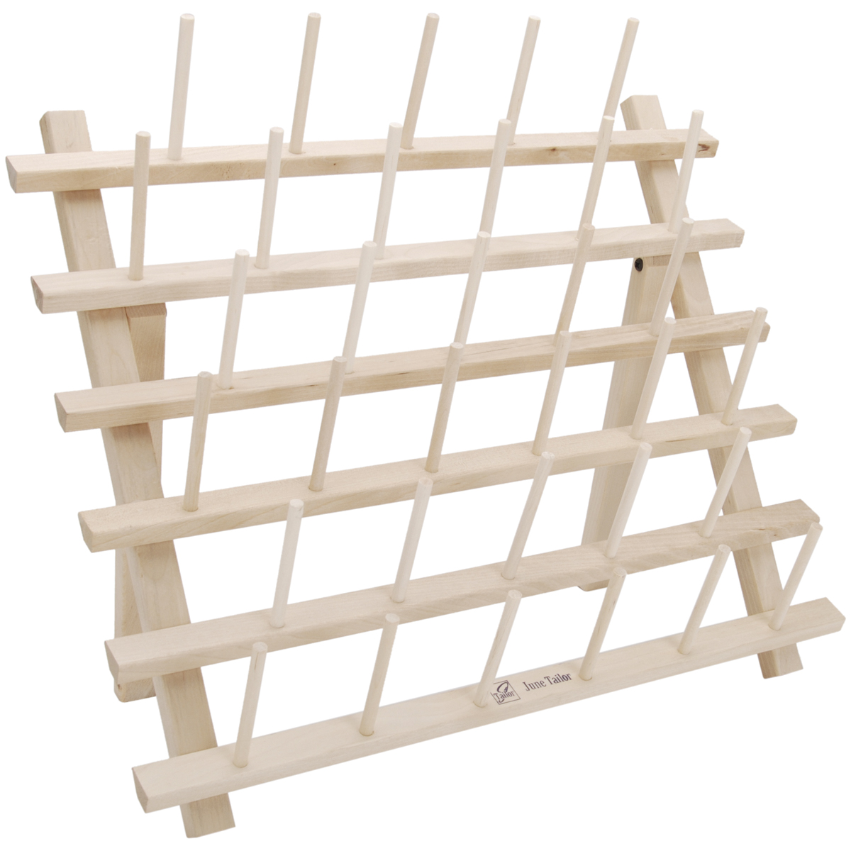 JUNE TAILOR-Cone Thread Rack. This solid wood coned thread rack has a thirty-three cone capacity. Flip-out back leg enables tabletop use that can be easily stored when not in use. Rack measures 13-1/2x15-5/8x8in. Imported.