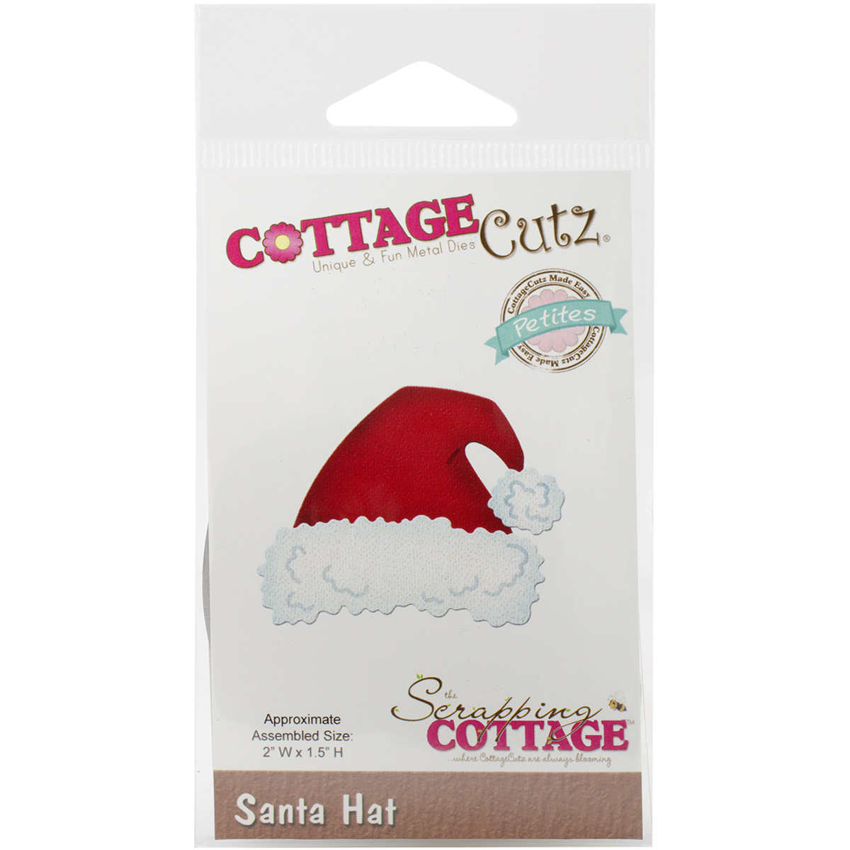 CottageCutz-Petites Die. With design styles that are cute and adorable, fun and whimsical, and classically elegant these universal wafer-thin dies make a great addition to your paper crafting supplies. Cut amazing shapes out of paper, cardstock, adhesive-backed paper, vinyl, vellum and more. They are made from American steel and are universal dies designed to work with all leading brand die-cutting machines on the market. This die has an easy release coating along with pin holes that aid in the removal of the cardstock. This package contains Santa Hat. Assembled design size: 1-1/2x2 inches. Made in USA.