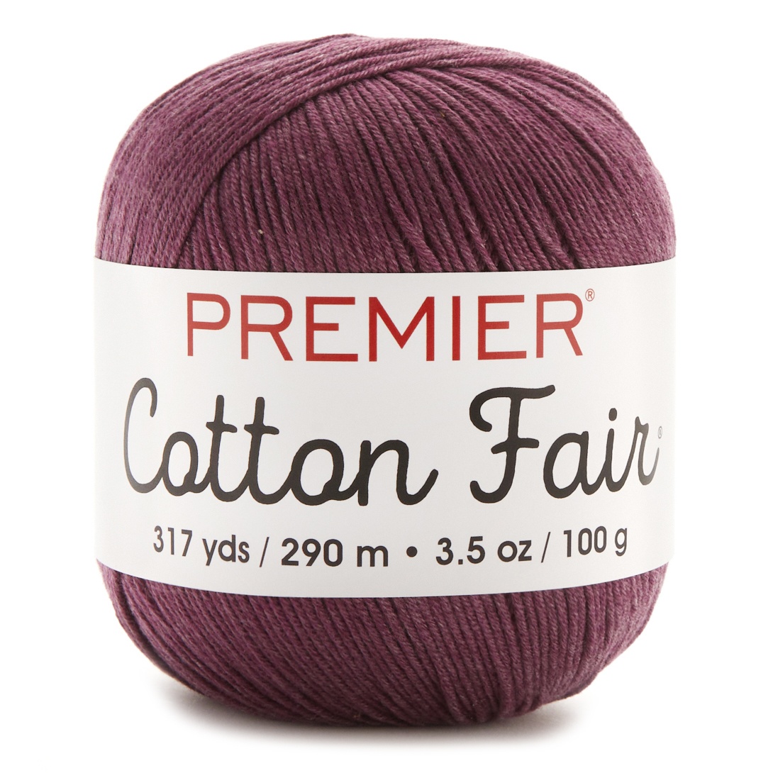 PREMIER YARNS-Cotton Fair Solids Yarn. This light weight cotton blend is perfect for all your summer projects. The bit of acrylic gives this yarn a little bounce and movement. It is great for lightweight scarves, sweaters and wraps. Weight category: 3, 50% acrylic and 50% cotton, 3.5oz/100g, 317yd/290m. Gauge: 23st x29r=4in/10cm on size US 4 needles. Suggest crochet hook size G-6. Care: machine wash and dry. Available in a variety of designs, each sold separately. Imported.