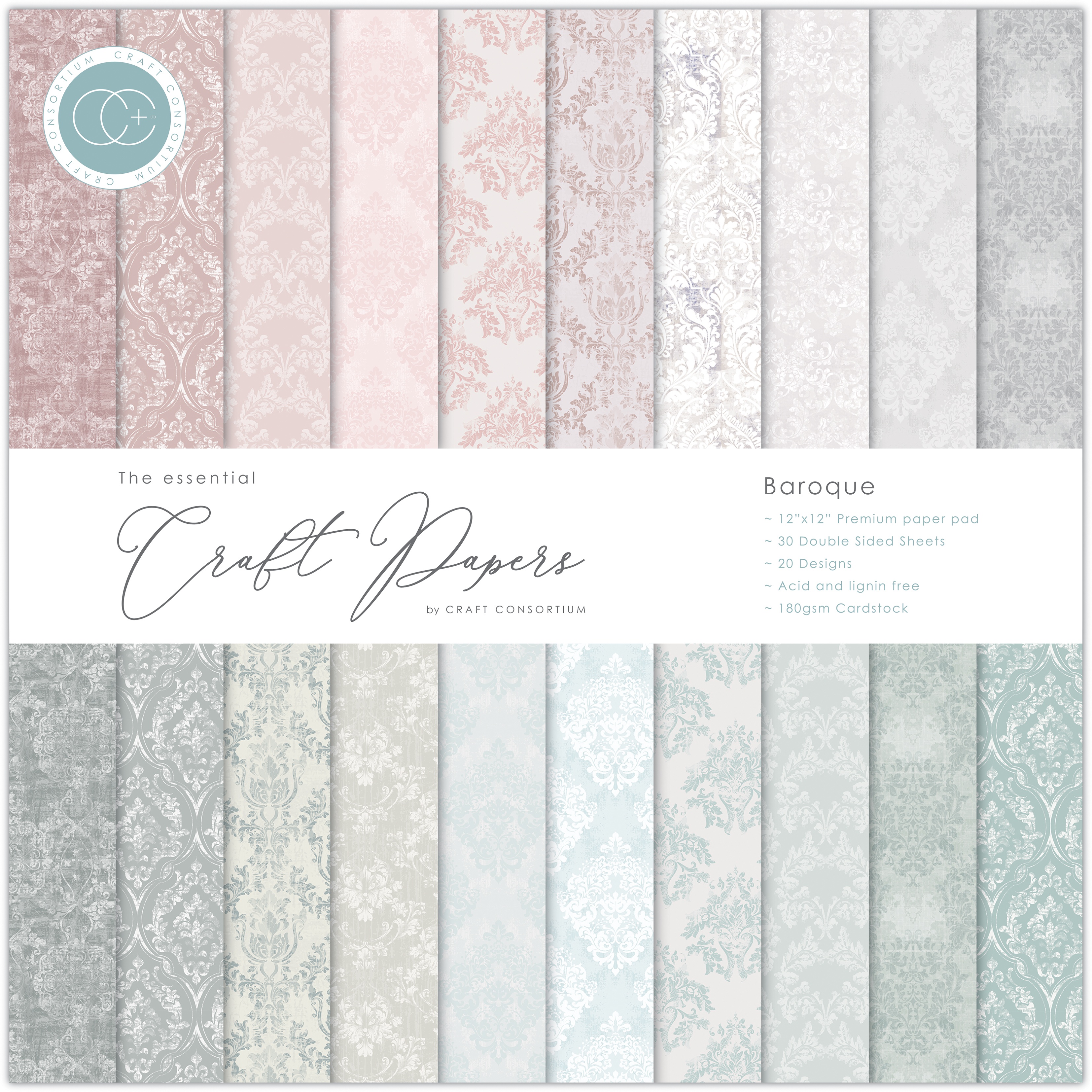 Craft Consortium Double-Sided Paper Pad 12"X12" 30/Pkg-Baroque, 20 Designs