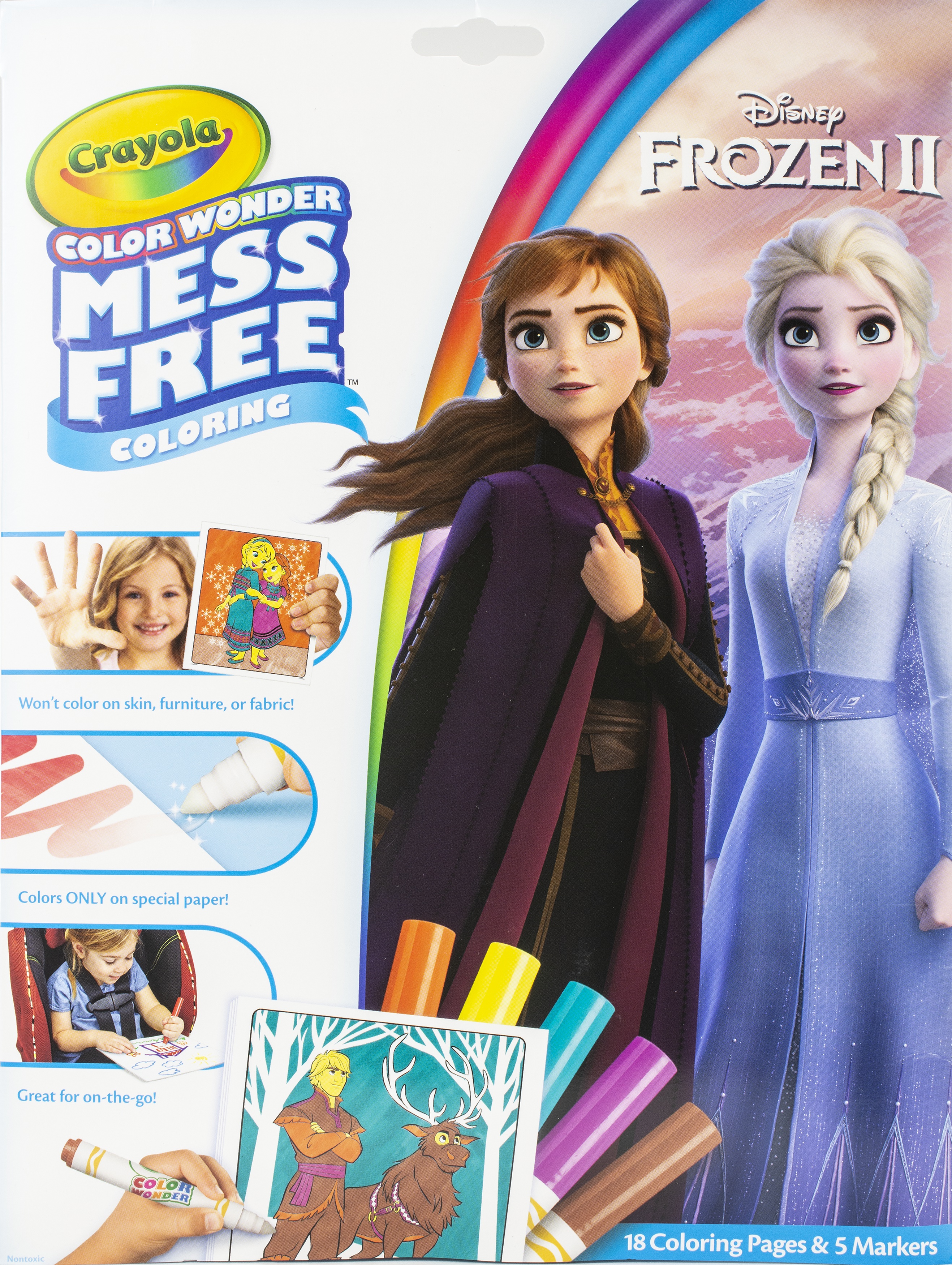 Keep the Color Wonder fun going with mess-free coloring pages of Frozen fun! Color Wonder markers work only on special paper. Won't color on skin, furniture or carpets. This 9x12 inch package contains 18 coloring pages and five markers. Non-toxic. Conforms to ASTM D 4236. WARNING: Choking Hazard- small parts. Not for children under 3 years. Made in USA.