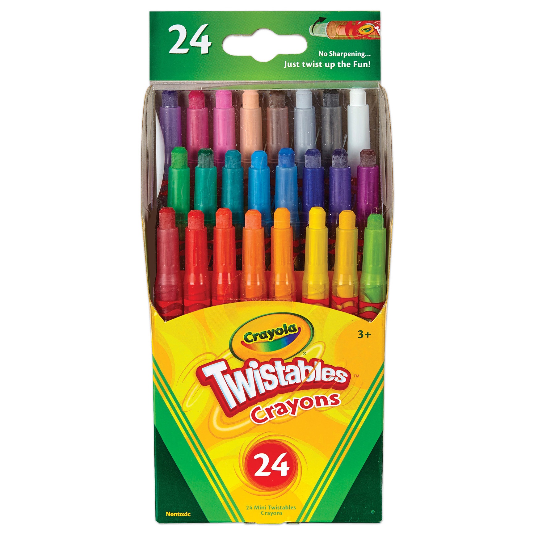 CRAYOLA-Mini Twistables Crayons. Crayola Mini Twistables Crayons come in twenty-four brilliant colors to get your imagination spinning! Their compact size is perfect for projects at home or on the go! Just twist the barrel ends and the crayons are ready to use. No sharpening required! Coloring has never been so much fun! This package contains twenty-four Mini Twistables Crayons in a reusable soft plastic case (7x3-1/2x1-1/4in). Non-toxic and conforms to ASTM D4236. WARNING: CHOKING HAZARD-Small Parts. Not for children under 3 years. Imported.