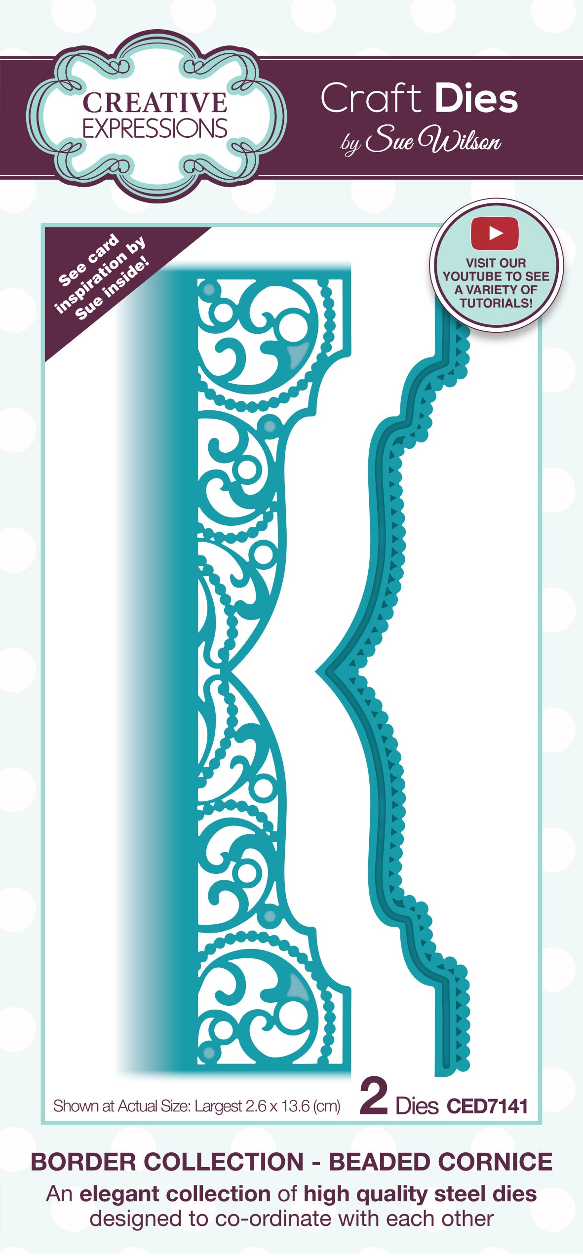 The Beaded Cornice Border Craft Die is perfect for creating frames & borders great for cards, scrapbooking or home decor projects. This die collection can be mixed and matched with other dies in the range or used on their own. The pack contains project inspiration from Sue to get the creative juices flowing. The dies are compatible with most home die cutting machines, fits through a 6-inch-wide machine. Imported.