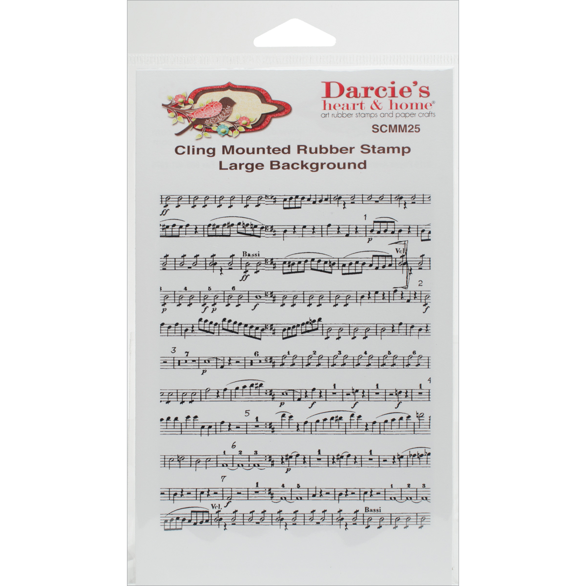 STAMPERS ANONYMOUS-Darcie's Cling Mounted Rubber Stamp. You will love the cute design that this large background stamp features! Each stamp is made of red rubber and mounted on a foam pad for a solid transfer each time you stamp. This package contains Music Notes, one 4x4-3/4 inch stamp. Made in USA.