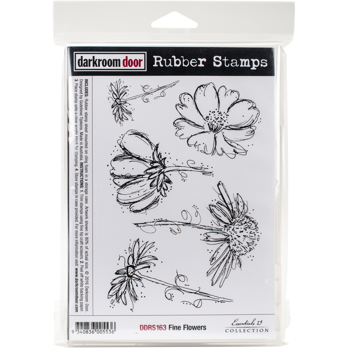 Darkroom Door-Cling Stamps. These detailed stamps are the perfect way to add fun images to your cards, scrapbook pages and more! Use with any clear acrylic block (sold separately). This package contains one 7x4-3/4 inch cling stamp sheet within one 7-1/2x5- 1/4x1/2 inch storage case. Design: Fine Flowers. Imported.