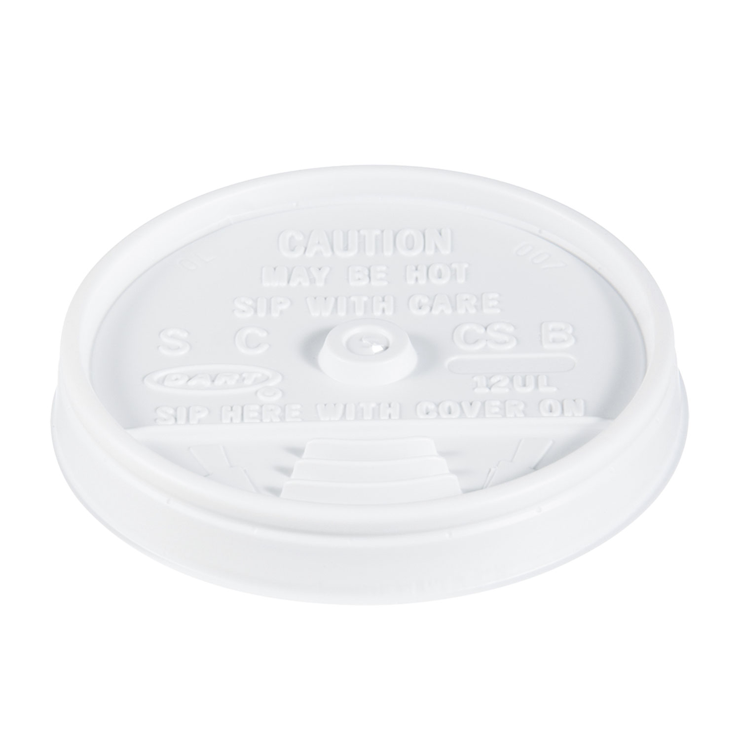 Vented to allow steam to escape. Reduces dribbles and spills. Open sip-through design. Fits: 10-, 12-, 14-oz Foam Cups; Material(s): Plastic; Color(s): White; For Use With: 10J12, 12J12, 14J12, 14FJ12, 12X12.