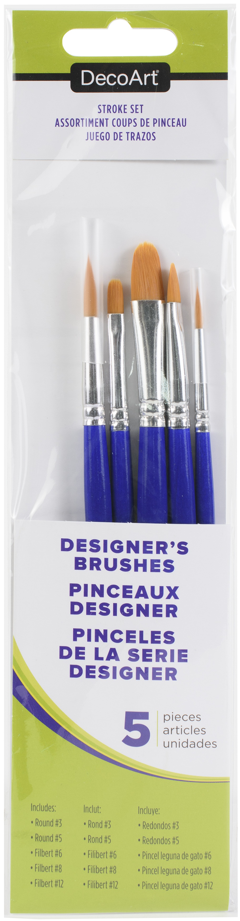 Specifically designed to produce high quality results at an affordable price. These brush sets meet all you arts and craft needs. Set includes: Rounds 3 and 5; and Filberts 6, 8 and 12.
