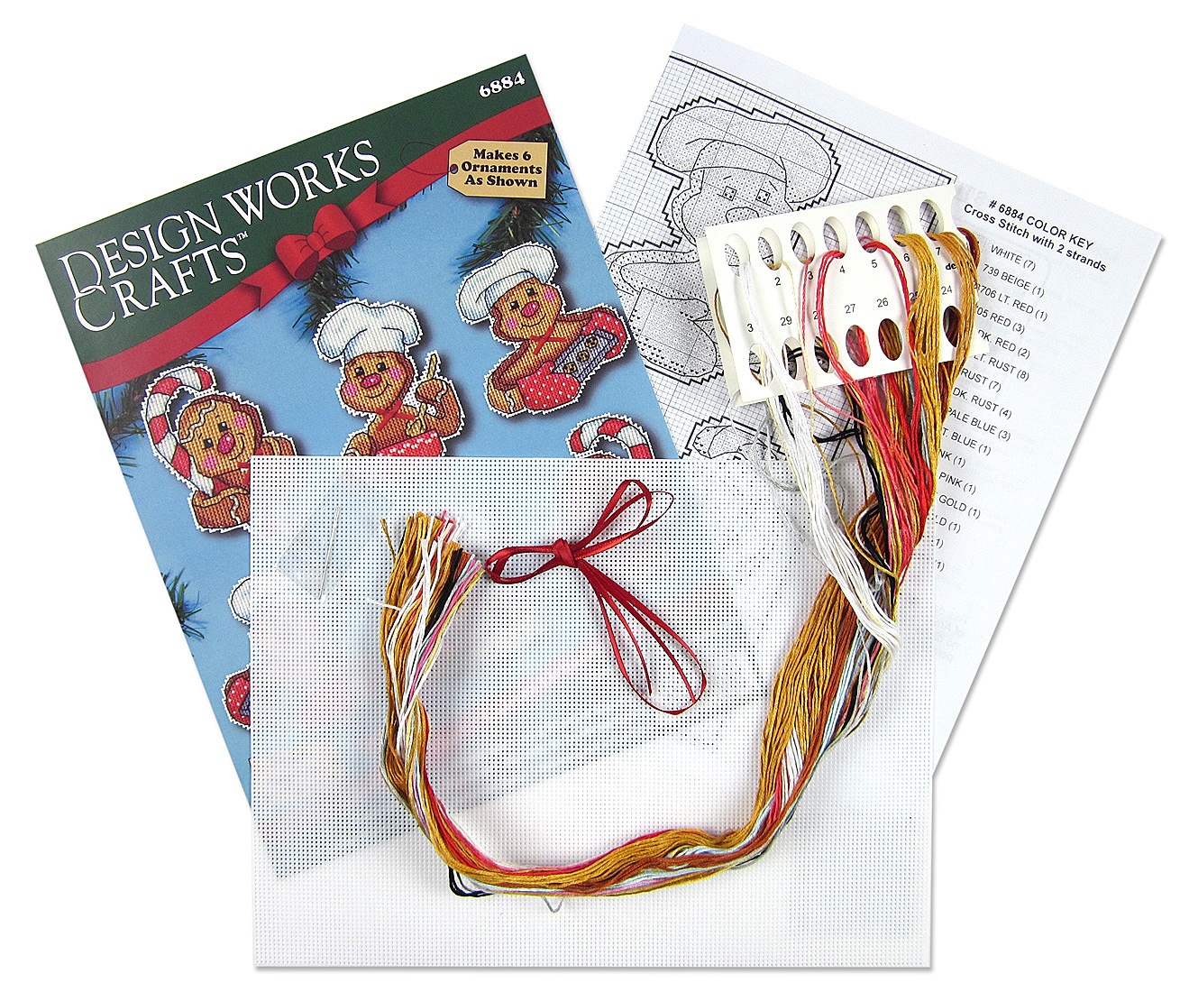 Beautiful designs and top-quality materials make Design Works one of the top cross stitch kit makers worldwide. This package contains 14-count plastic canvas, 100% cotton embroidery floss, one needle and fully illustrated instructions. Finished Size: Six 3.5X3.5 inch ornaments. Design: Gingerbread. Made in USA.