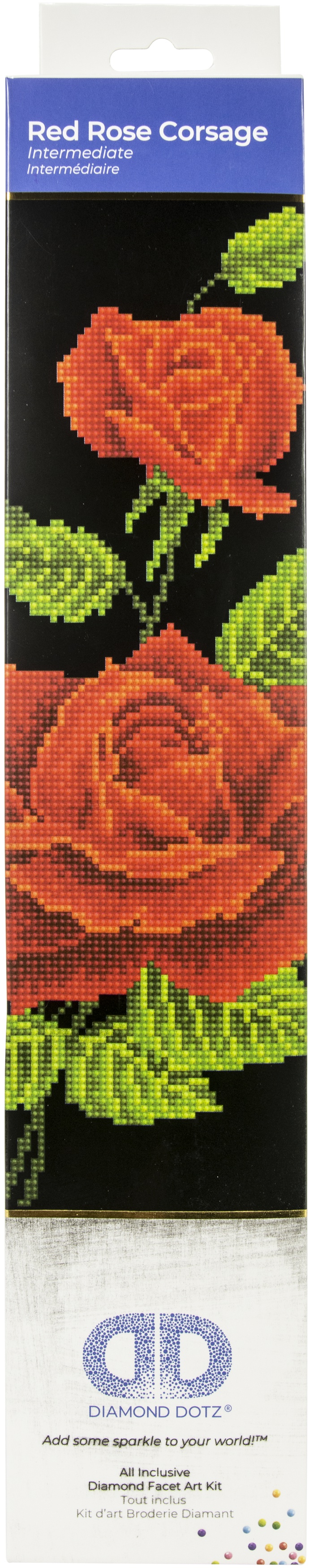 Quick, easy and fun to do! Just use the Diamond Dotz Stylus to pick up a dot and place it onto the matching square on the sticky print. This package contains one 13.8x19.7 inch piece of high quality colors printed fabric, Diamond Dotz, one stylus, one craft tray, one wax caddy and multi-lingual instructions. Design: Red Rose Corsage. Design Size: 10.6x16.5 inches. Imported.