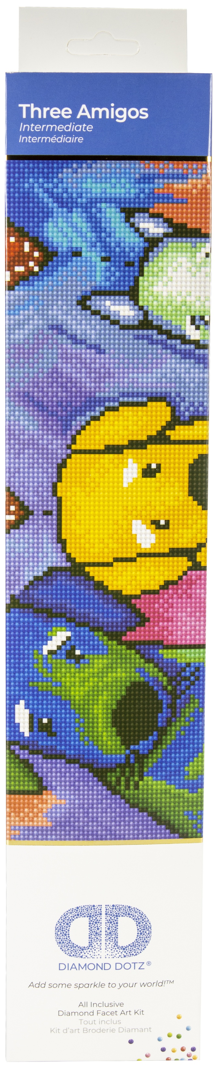 Quick, easy and fun to do! Just use the Diamond Dotz Stylus to pick up a dot and place it onto the matching square on the sticky print. This package contains one piece of high quality colors printed fabric, Diamond Dotz, one stylus, one craft tray, one wax caddy and multi-lingual instructions. Design: Three Amigos. Design Size: 16.5x12.6 inches. Imported.