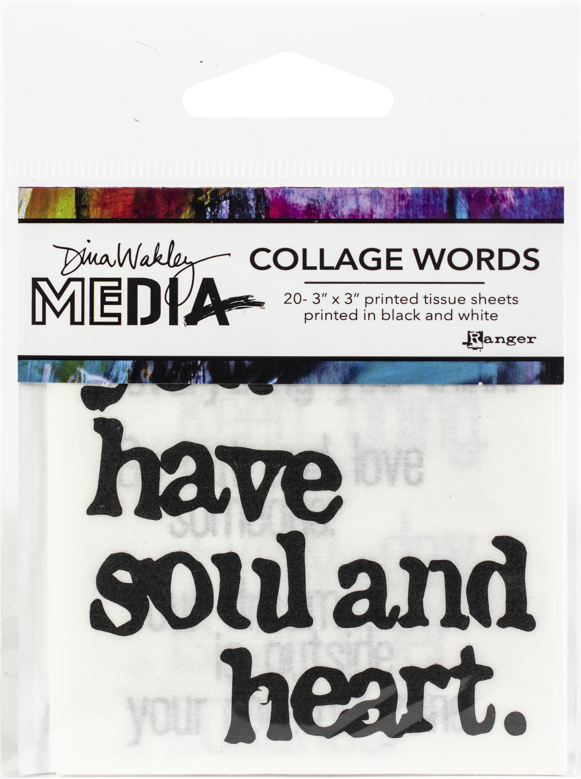 Dina Wakley Media Collage Words are sentiments printed on tissue that will be sure to inspire your creativity. The printed 3x3 inch tissue is ideal for collaging into mixed media art and journal pages. Just cut out your sentiments and add into your artwork. Includes 10 designs, two of each. Imported.