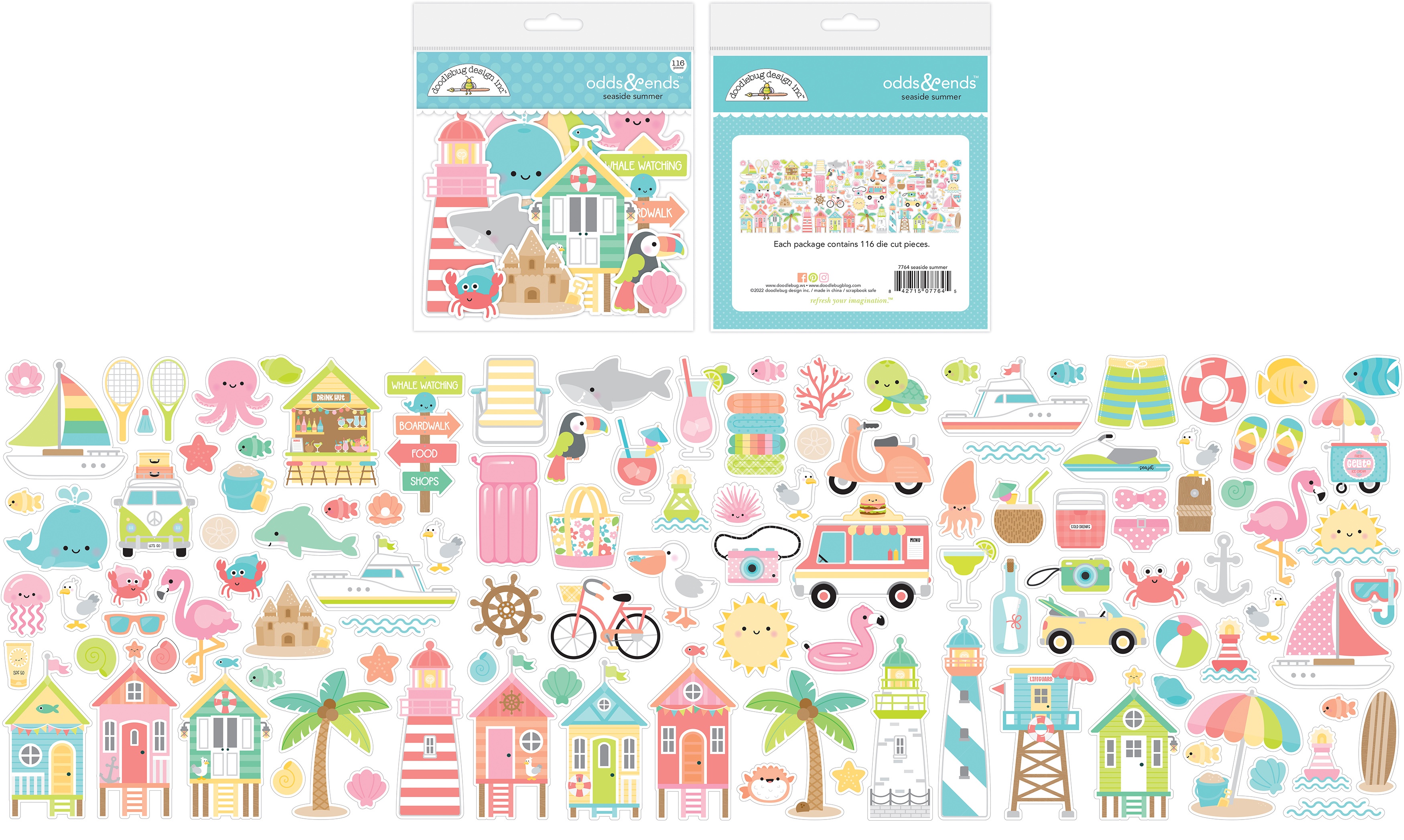 Create fun greeting cards and scrapbook pages with Doodlebug Odds & Ends Die Cuts. Package includes Seaside Summer