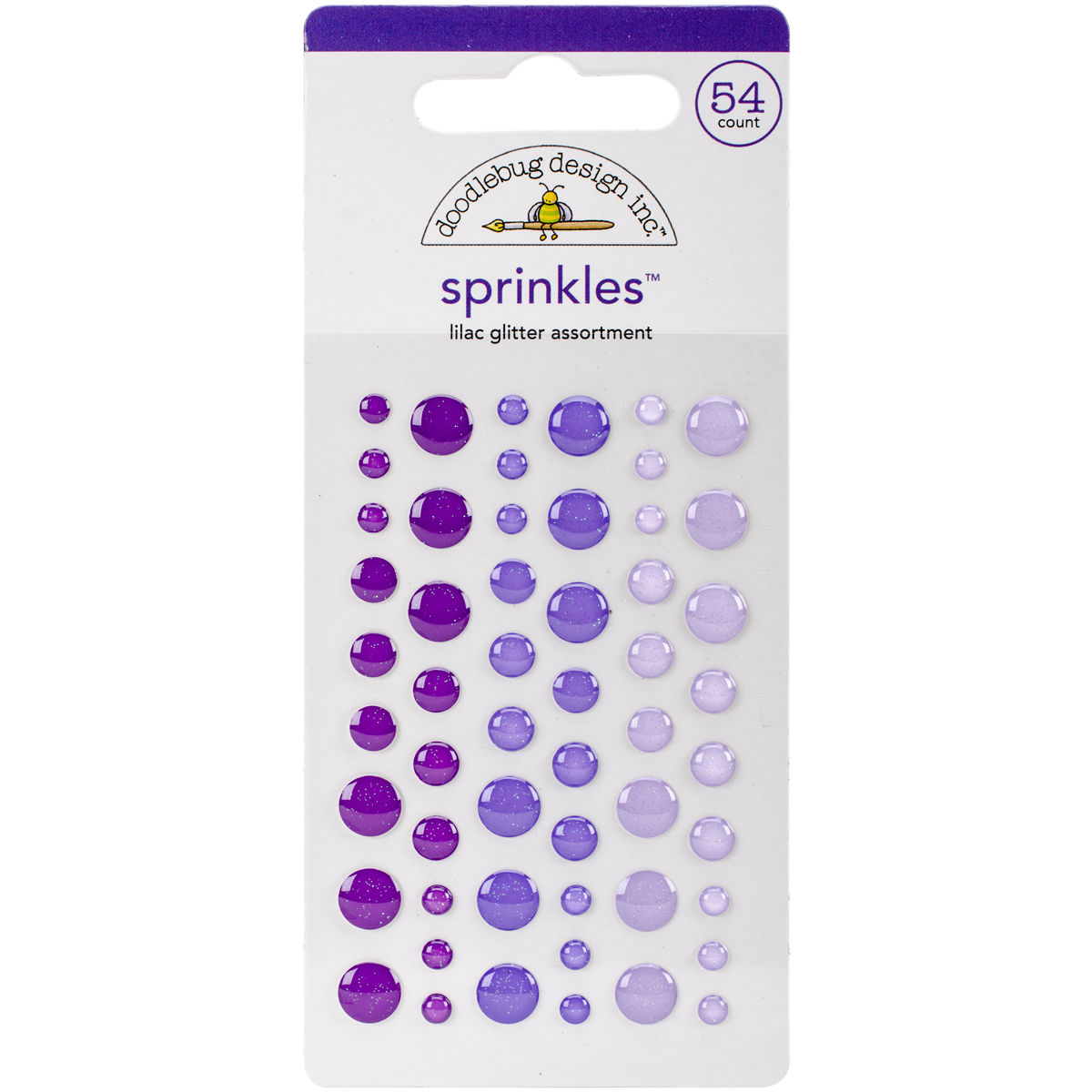 Doodlebug-Sprinkles Self Adhesive Glitter Enamel Embellishments. Add a touch of shimmer and brilliance to your project with these fun glitter enamel stickers! This package contains fifty-four self- adhesive glitter enamel embellishments in three different sizes and three different tints on one 3-3/4x2-1/2 inch backing sheet. Comes in a variety of colors. Each sold separately. Imported.
