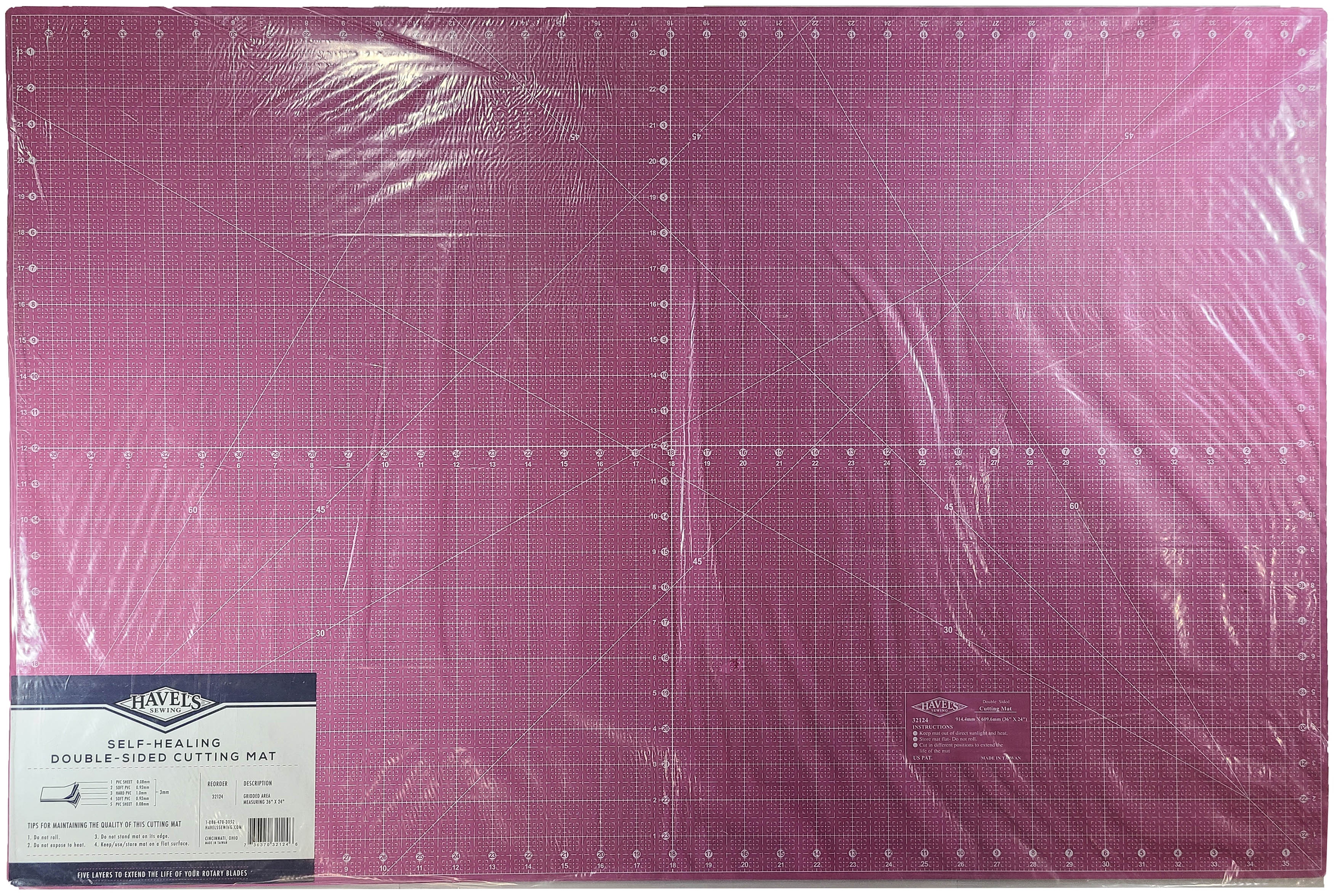 Havel's-Double Sided Rotary Cutting Mat. This mat is five layers thick to protect your rotary blades as well as your work area. The multi-angled grid lines offer a variety of creative options for a perfect cut every time. This package contains one 22x34 inch double-sided rotary cutting mat. Imported.
