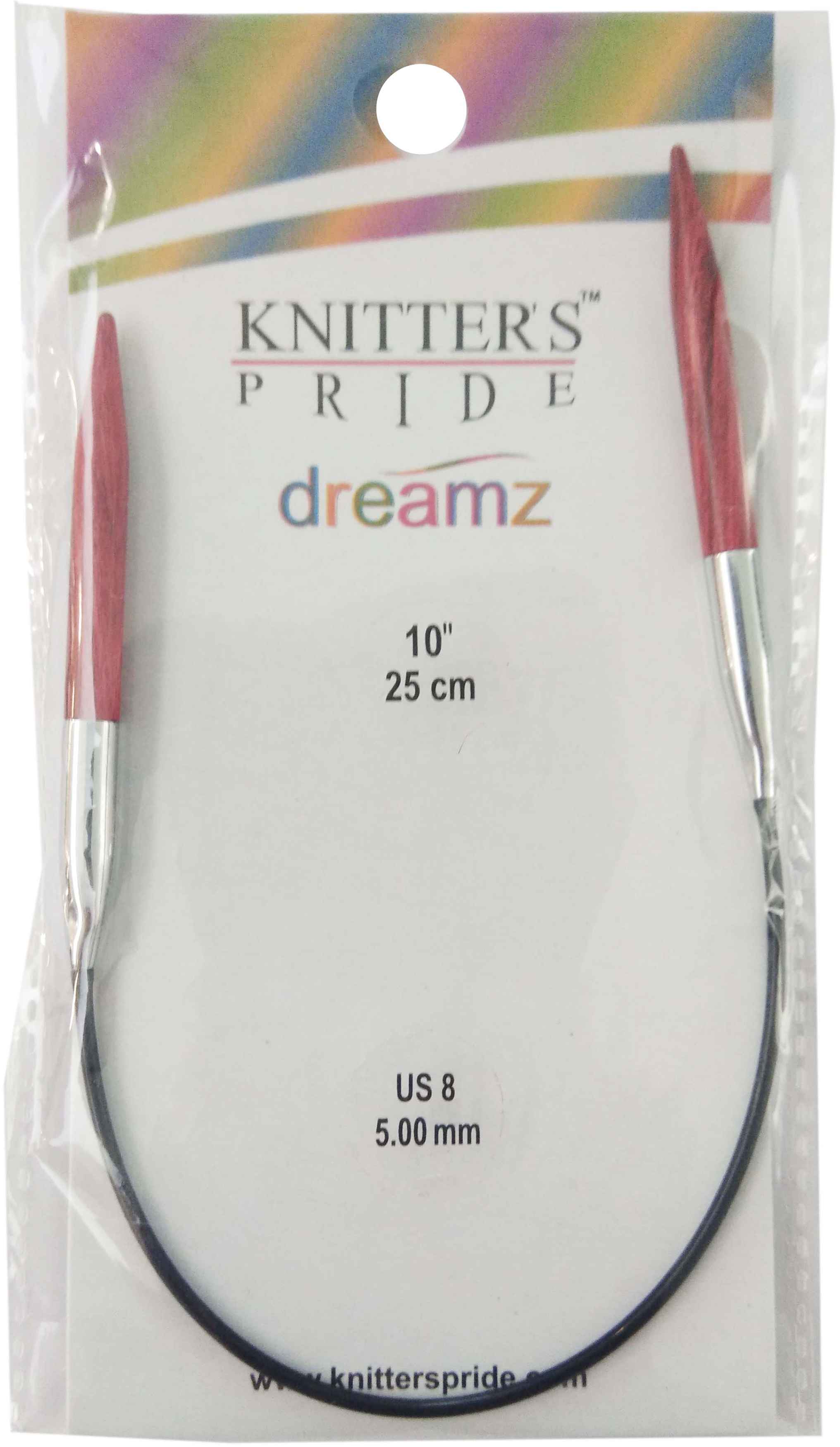 Knitter's Pride-Dreamz Fixed Circular Needles. Dreamz needles are the knitters favorite needles. They are lightweight strong and flexible. The polished wood surface works effortlessly with every type of yarn. The points are perfect and flawlessly tapered- ideal for all yarns and every project. A smooth join ensures easy stitch glide and no snagging. The cords lay flat with no kink or twist and easy to store. This package contains one pair of needles with a 10 inch cord. Comes in a variety of sizes. Each sold separately. Imported.