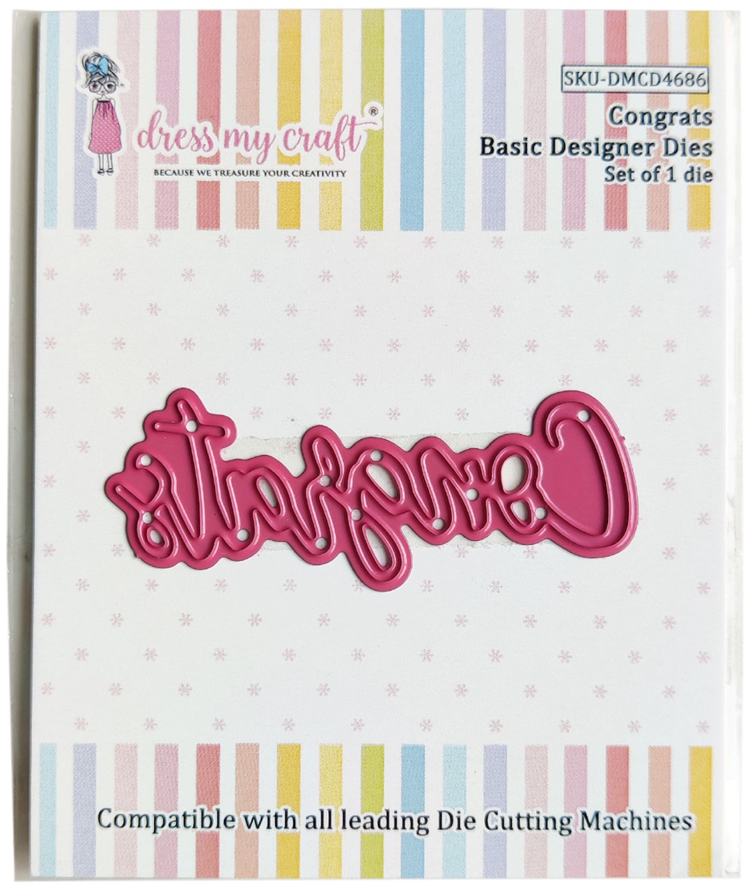 Specially designed dies to jazz up your Craft projects and parties. You can create beautiful projects by using these dies. Make your days special with our special sentiments and celebrations dies. These wafer-thin die sets are designed to cut, emboss, or stencil a single sheet of cardstock, paper, foam, burlap, thin plastic, metallic foil, vellum, etc. These are very compatible with Easy Cut Machine (Dress My Craft), Cuttlebug, Sizzix BIGkick, Big Shot, Vagabond, Gemini, Grand Calibur, Spellbinders Platinum, Big Shot Pro machines, etc. This package contains Congrats: One 2.12x0.74 inch metal die. WARNING: Choking Hazard. Not suitable for children under 3 years. Imported.