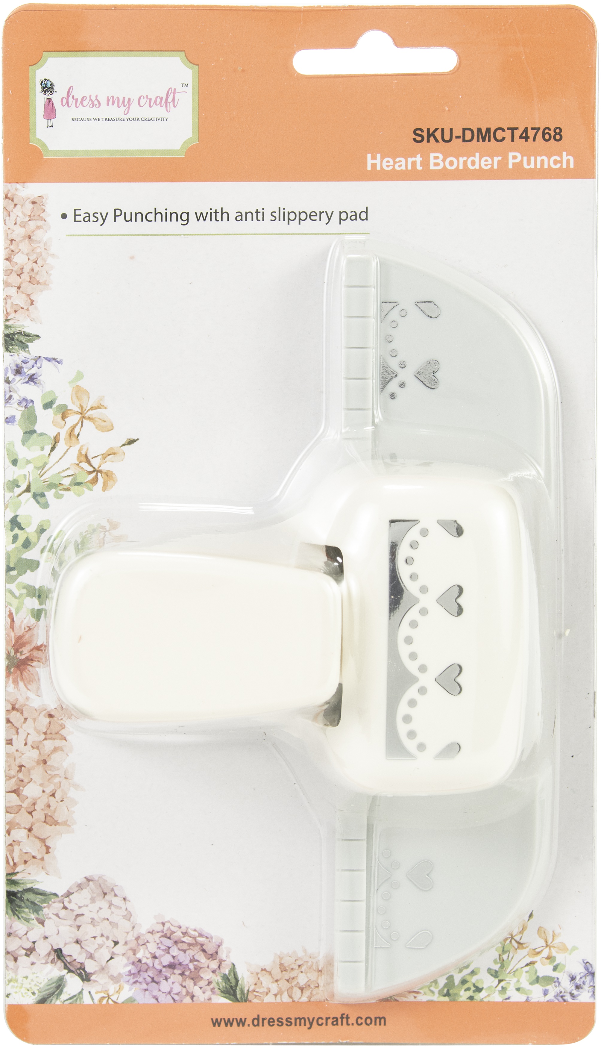 Cuts up to 1 cm on the paper border. It can cut 100-240 gsm paper easily. Anti slippery tabs below make punching more easy. This package contains one 3.5x6.25x2 inch paper punch. Design: Heart Border. Imported.
