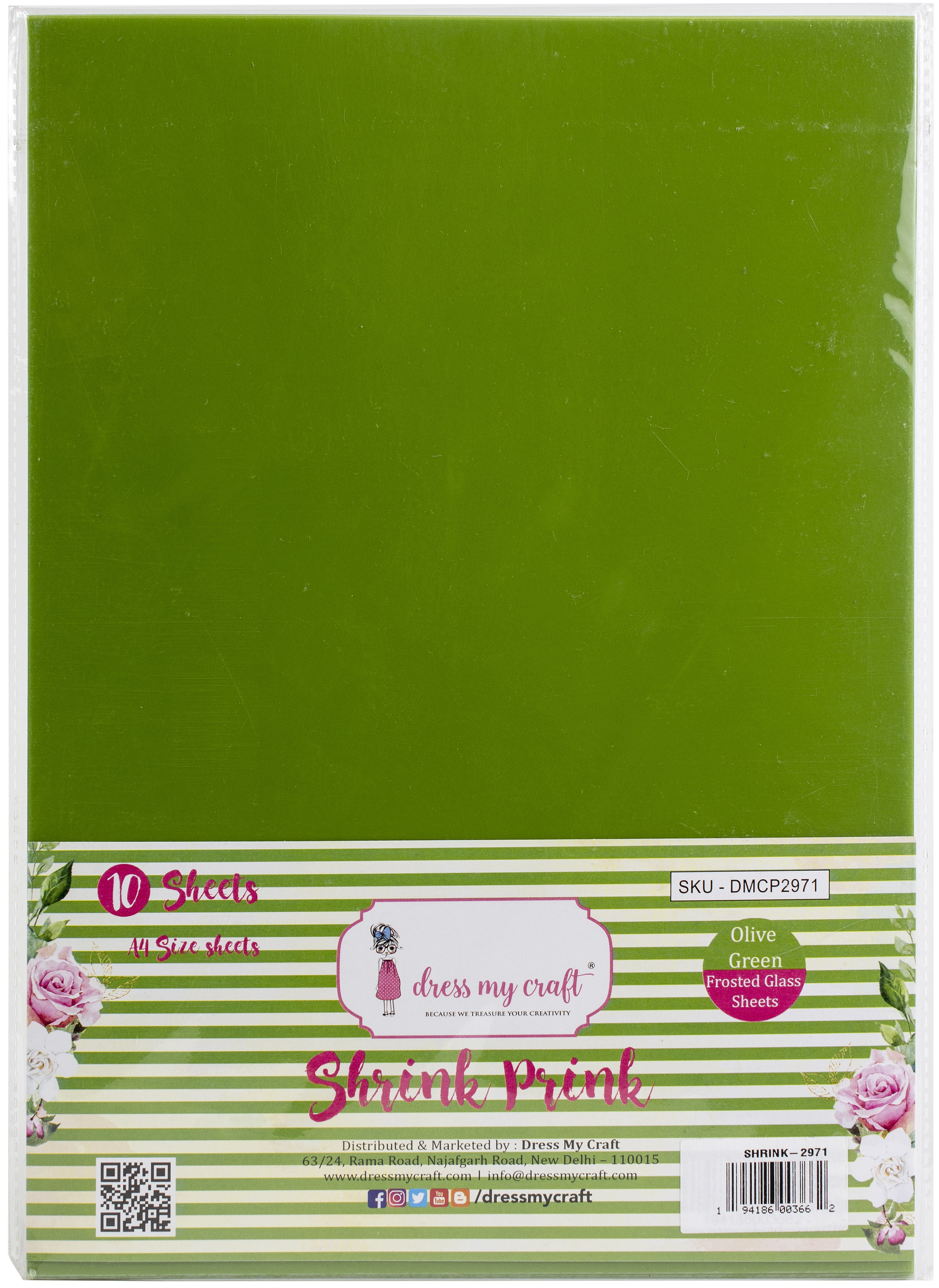 Dress My Craft Shrink Prink Frosted Sheets A4 10/Pkg Olive Green