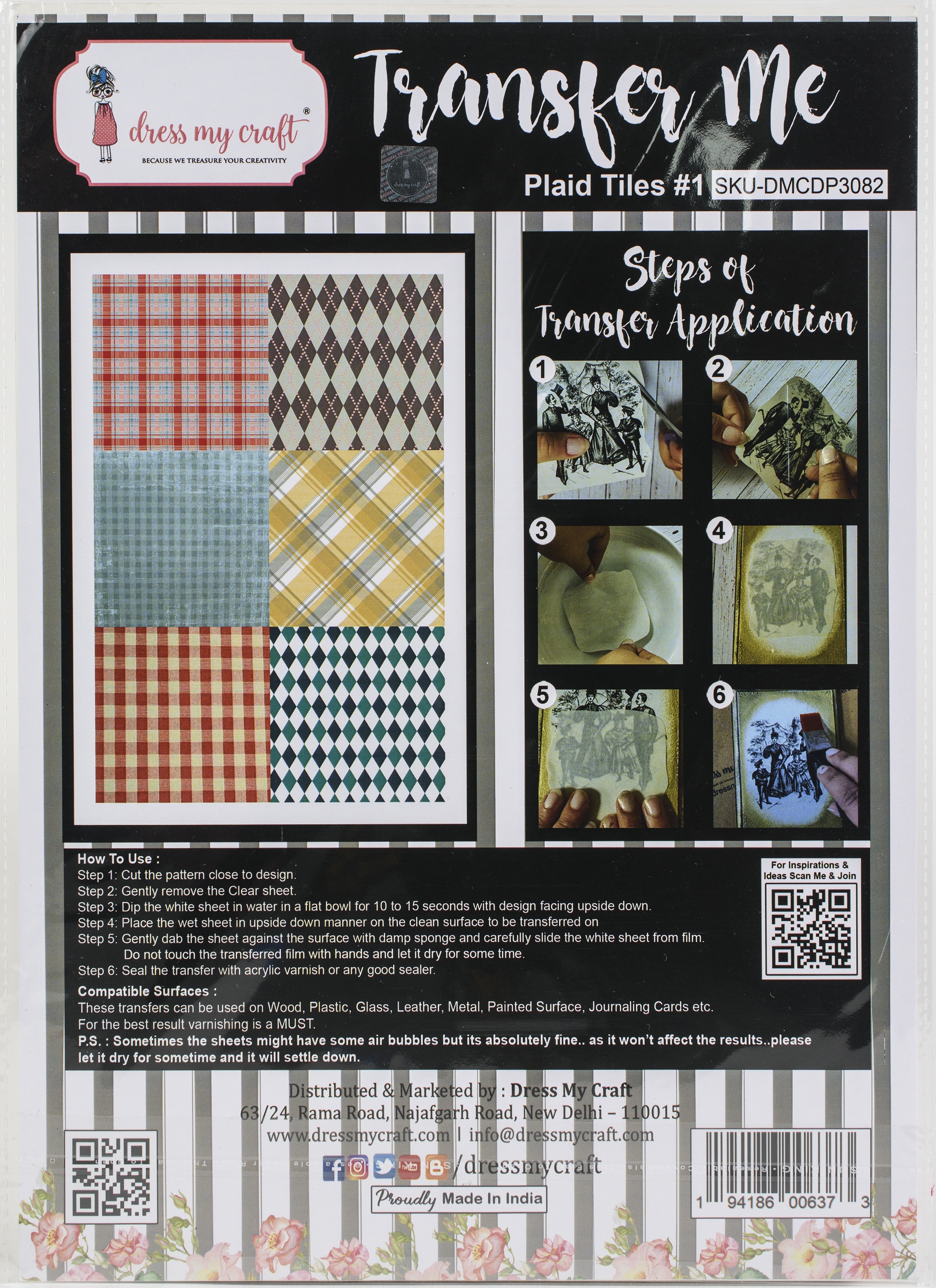 Dress My Craft Transfer Me Sheet A4-Plaid Tiles #1