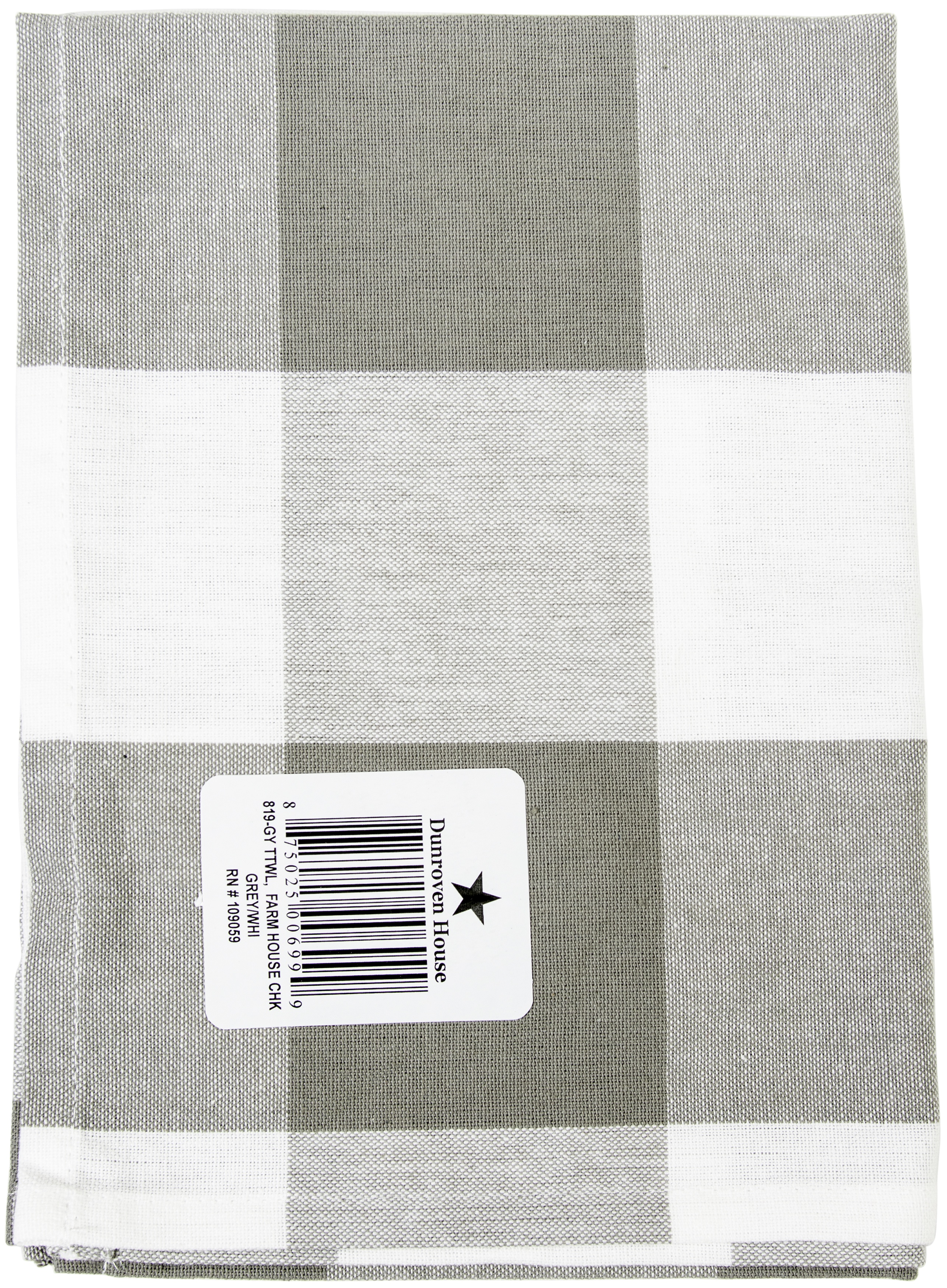 Dunroven House Flat Weave Tea Towel 20"X28" Grey & White 3" Check