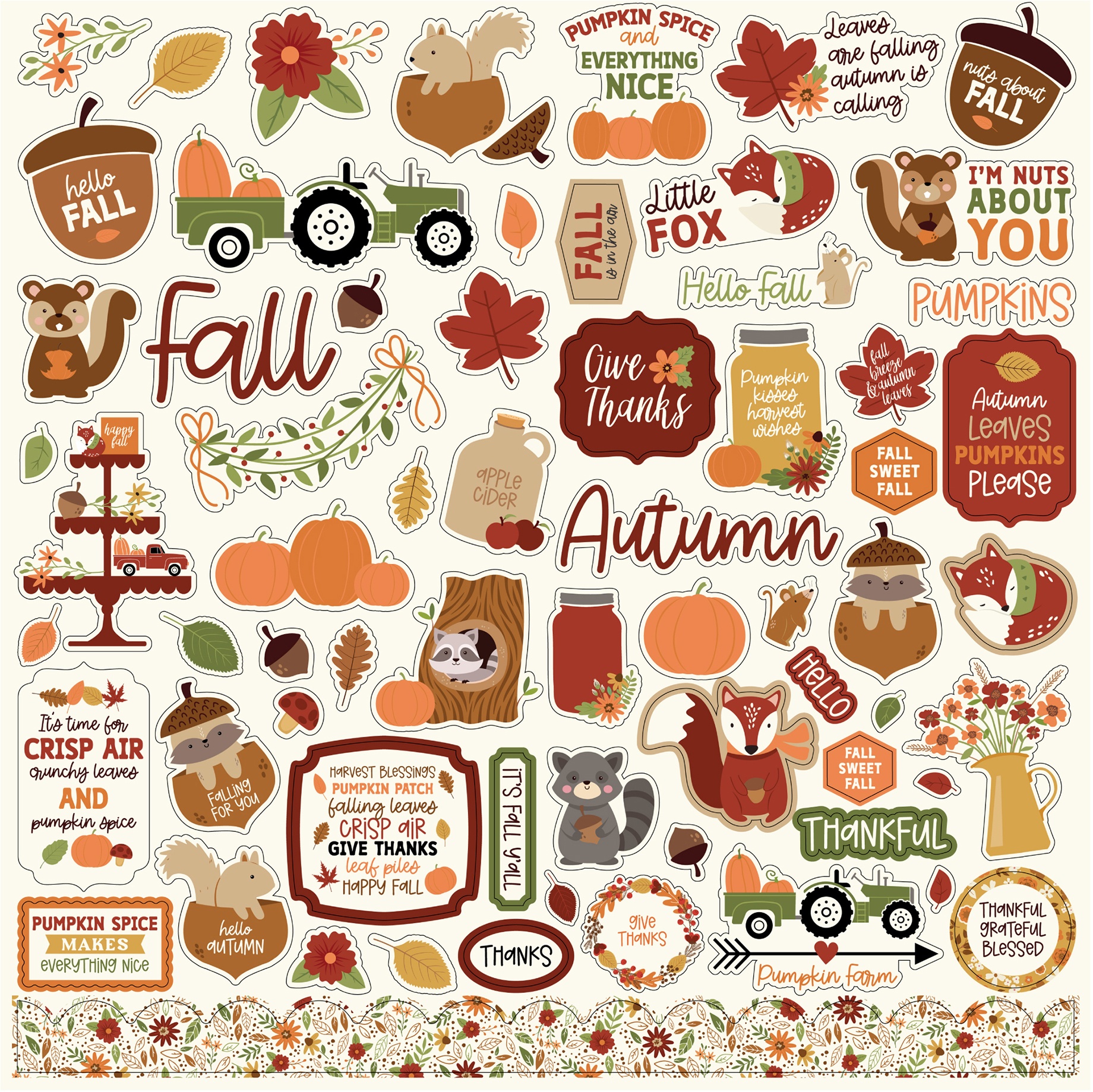 Stickers add the perfect finishing touch to your paper projects. Stickers can be a fun embellishment, a whimsical accent or add elegant polish to scrapbook pages, greeting cards, mixed media and more. This package contains one Echo Park Elements Cardstock Stickers 12x12 inches, I Love Fall. Made in the USA.