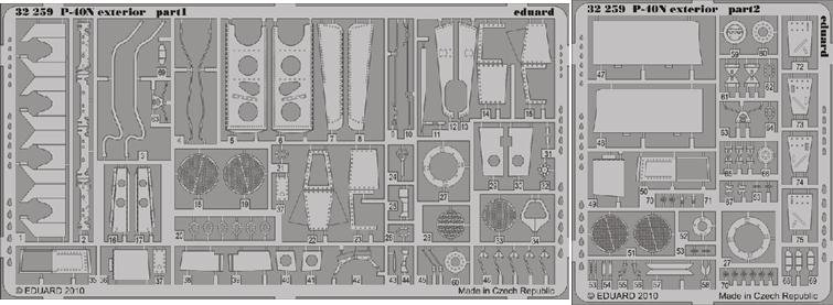 Eduard Models P40N Exterior Detail for Hasegawa -- Plastic Model This is the 1/32 Scale Aircraft P40N Exterior for Hasegawa from Eduard Models..