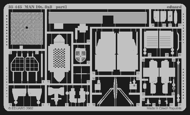 Eduard Models Photo Etch Set MAN 10t I 8x8 -- Plastic Model Aircraft This is the Eduard 1/35 Scale Metal Detail Parts for the Revell MAN10t I 8x8. Suitable for Ages 14 & Older..
