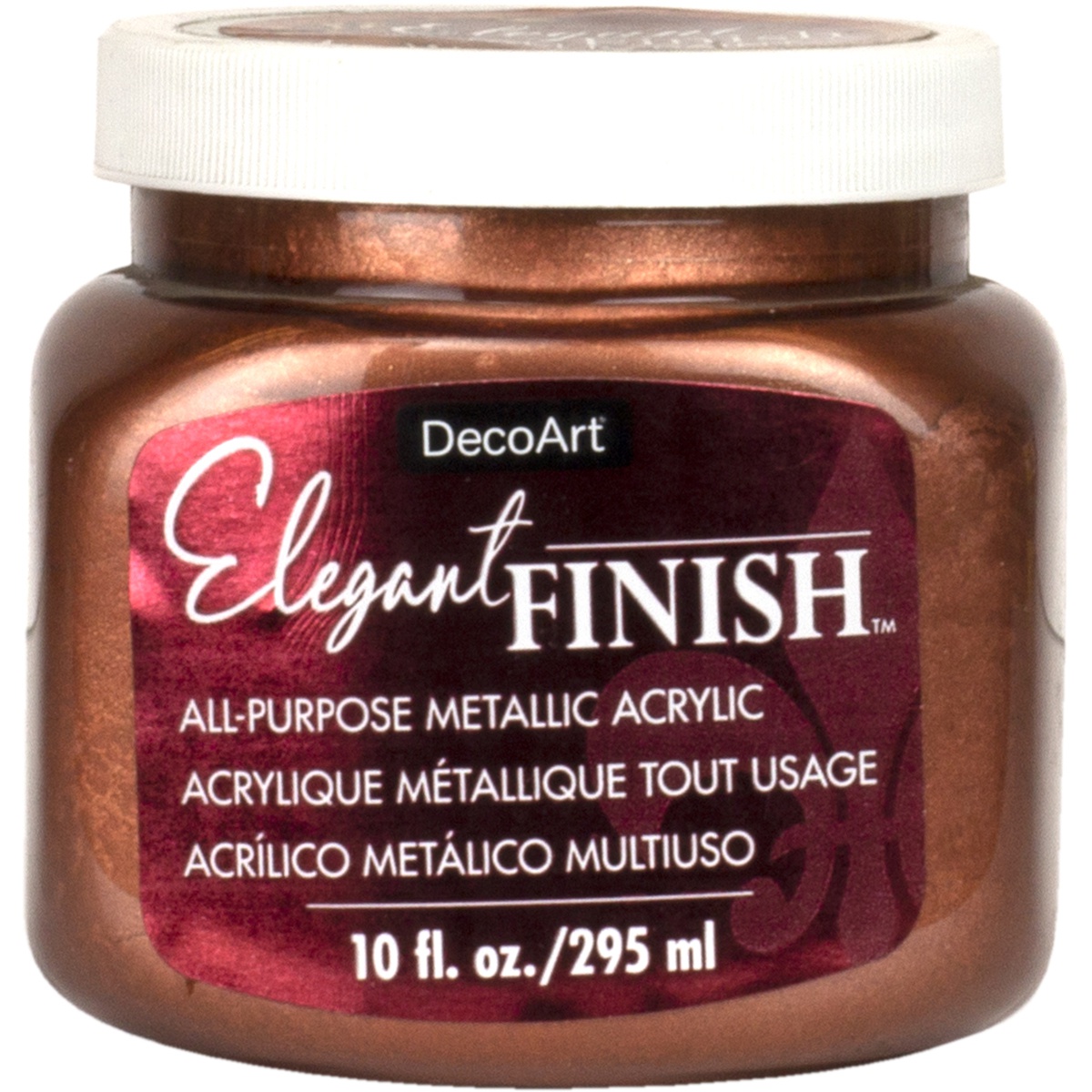DECO ART-All-purpose metallic acrylic for walls, furniture, or accent pieces. Use on most surfaces including paintable wallpaper. Apply with brush or sponge. Shake well. Soap and water clean-up. Water-based. Includes 10 U.S. fluid ounces. Conforms to ASTM D4236. Warning: May be harmful if swallowed. Contains: Soluble copper. Precautions: Keep out of reach of children.